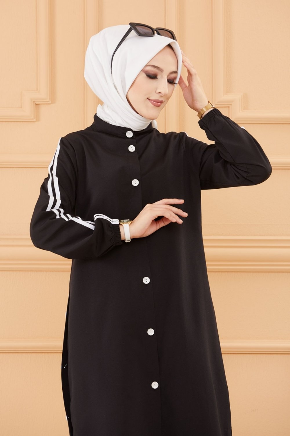 Tunique ample évasée boutonnée pour femme (Mode islamique) - Couleur noire