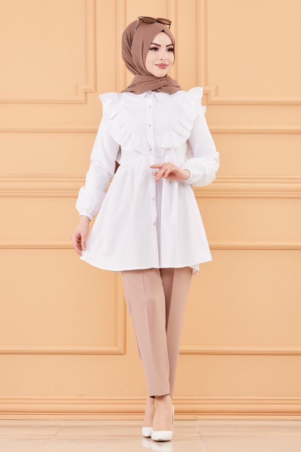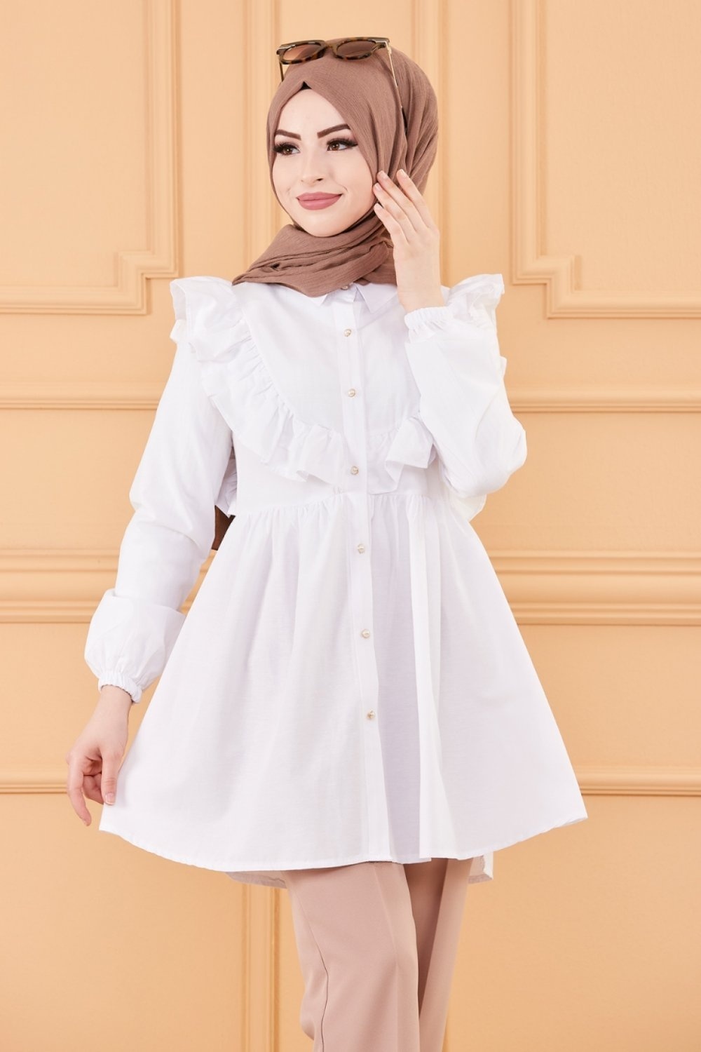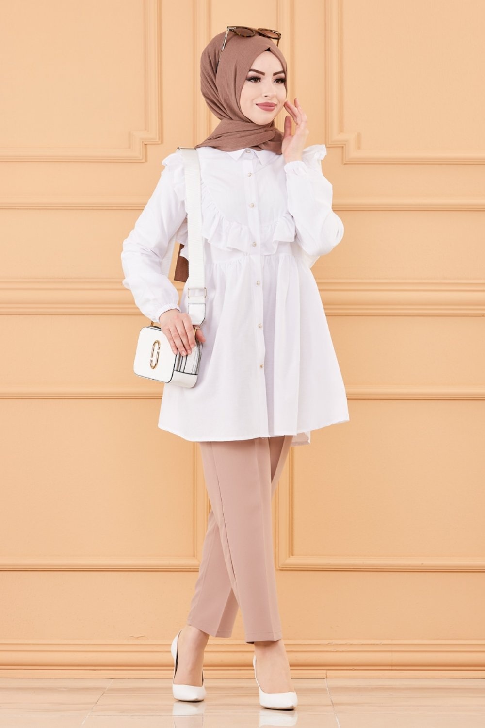 Tunique chemise habillée pour femme (Vêtement Mode Musulmane) - Couleur blanc Vetement & Accessoire