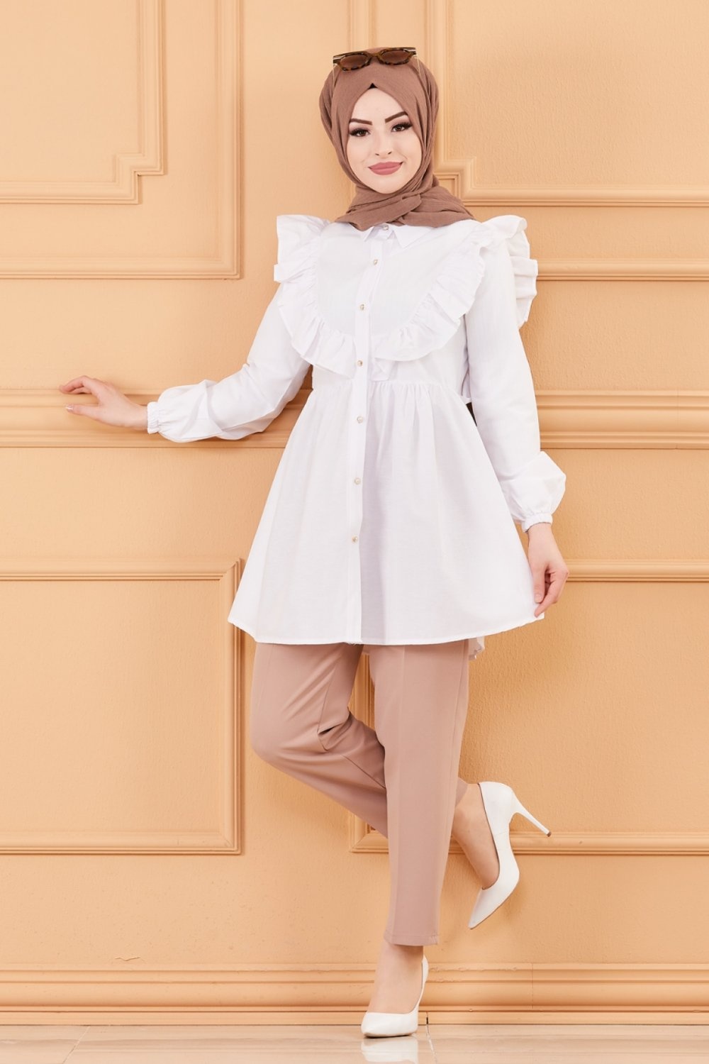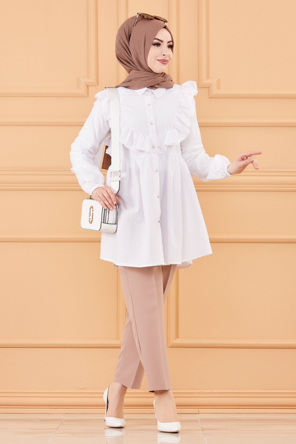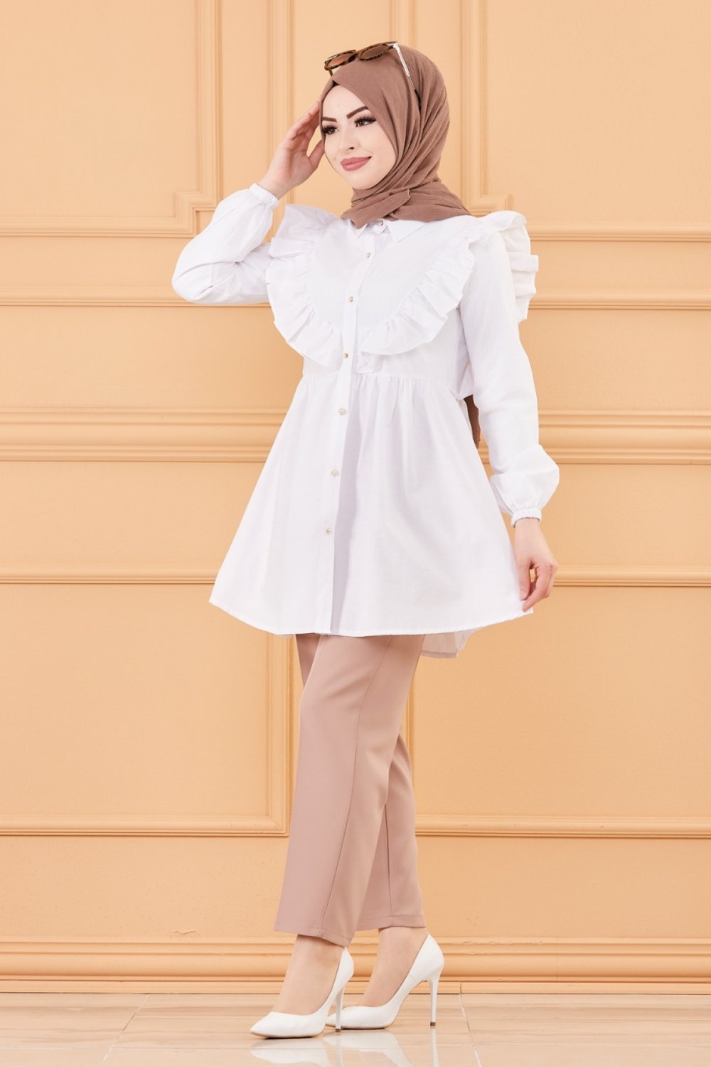 Tunique chemise habillée pour femme (Vêtement Mode Musulmane) - Couleur blanc Vetement & Accessoire