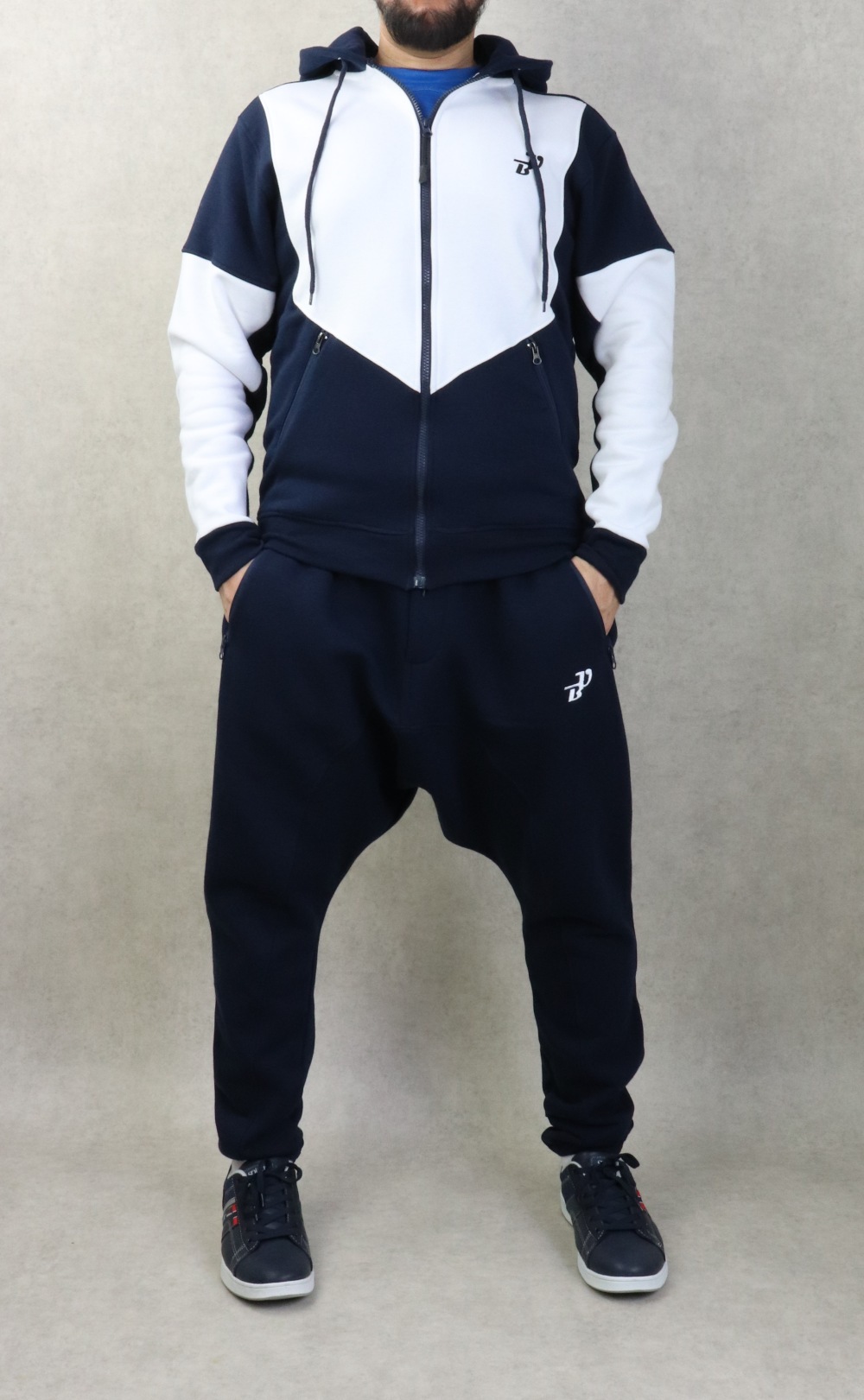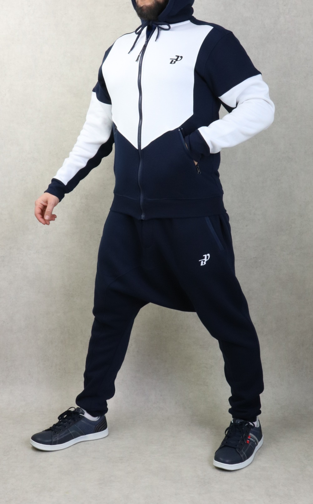 Veste jogging molletonné bicolore à capuche de marque Best Ummah - Couleur Bleu marine et blanc - REF. 36721 (29.00 €)