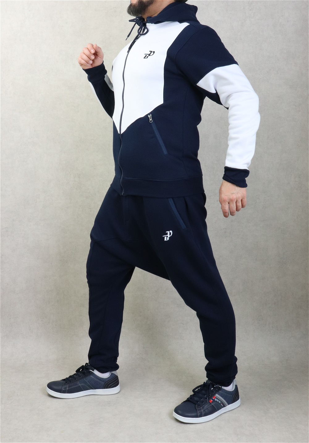 Pantalon jogging Seroual molletonné pour homme poches zip blanches - Seroual de Marque Best Ummah - Couleur Bleu marine - REF. 36732 (29.90 €)