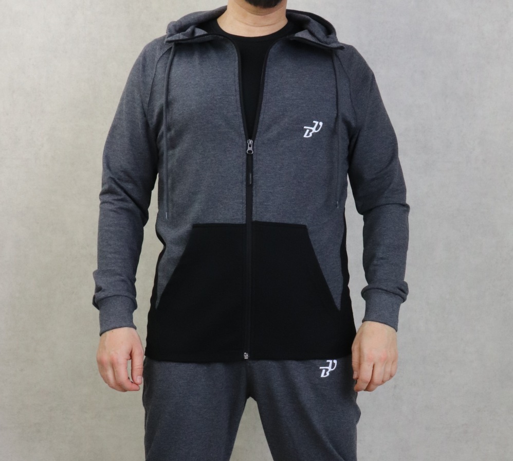 Survêtement Veste à capuche zippée bande noire Best Ummah et Pantalon en coton molletonnée - Couleur Gris clair chiné - REF. 38715 (55.00 €)