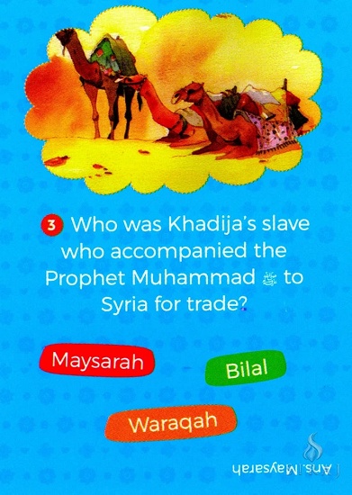 Sahabiyat Quiz Cards, with their insightful multiple-choice questions on fascinating topics, are perfect for the classroom, holidays or simply playing at home with your friends and family! The questions, based on facts, trivia relating to the lives of the female companions of the Prophet, range over Khadijah, the first Muslim; Aisha, the learned lady; daughters of the Prophet and much more.