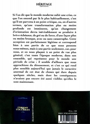 Si l'on dit que le monde moderne subit une crise, ce que l'on entend , c'est qu'il est parvenu à un tel point critique, qu'une transformation plus ou moins profonde est inévitable, qu'un changement de paradigme devra se produire à brève échéance, de gré ou de force, d'une façon plus ou moins brusque, avec ou sans catastrophe...