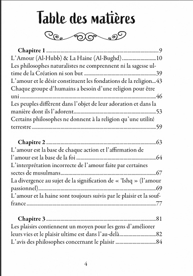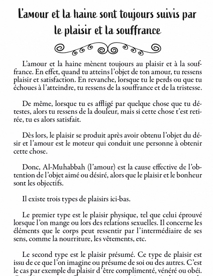 « Ce livre traite de l’amour et de la haine, ainsi que des éléments qui en découlent, qu’ils soient louables ou blâmables.