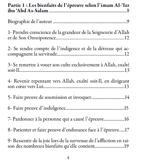 Ce livre traite de l’épreuve, de ce qu’elle contient comme bienfaits et de ce qu’elle renferme comme sagesse.