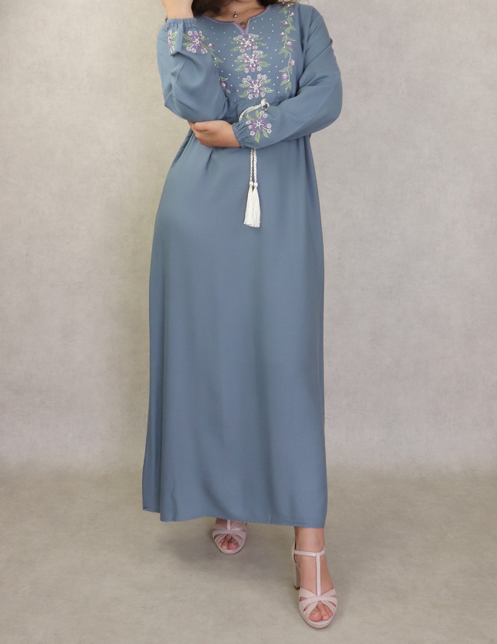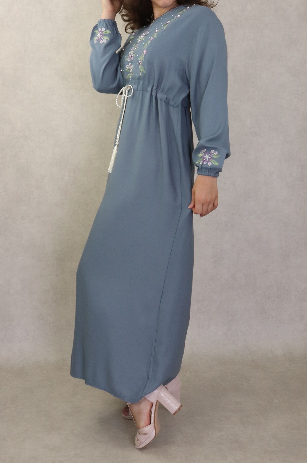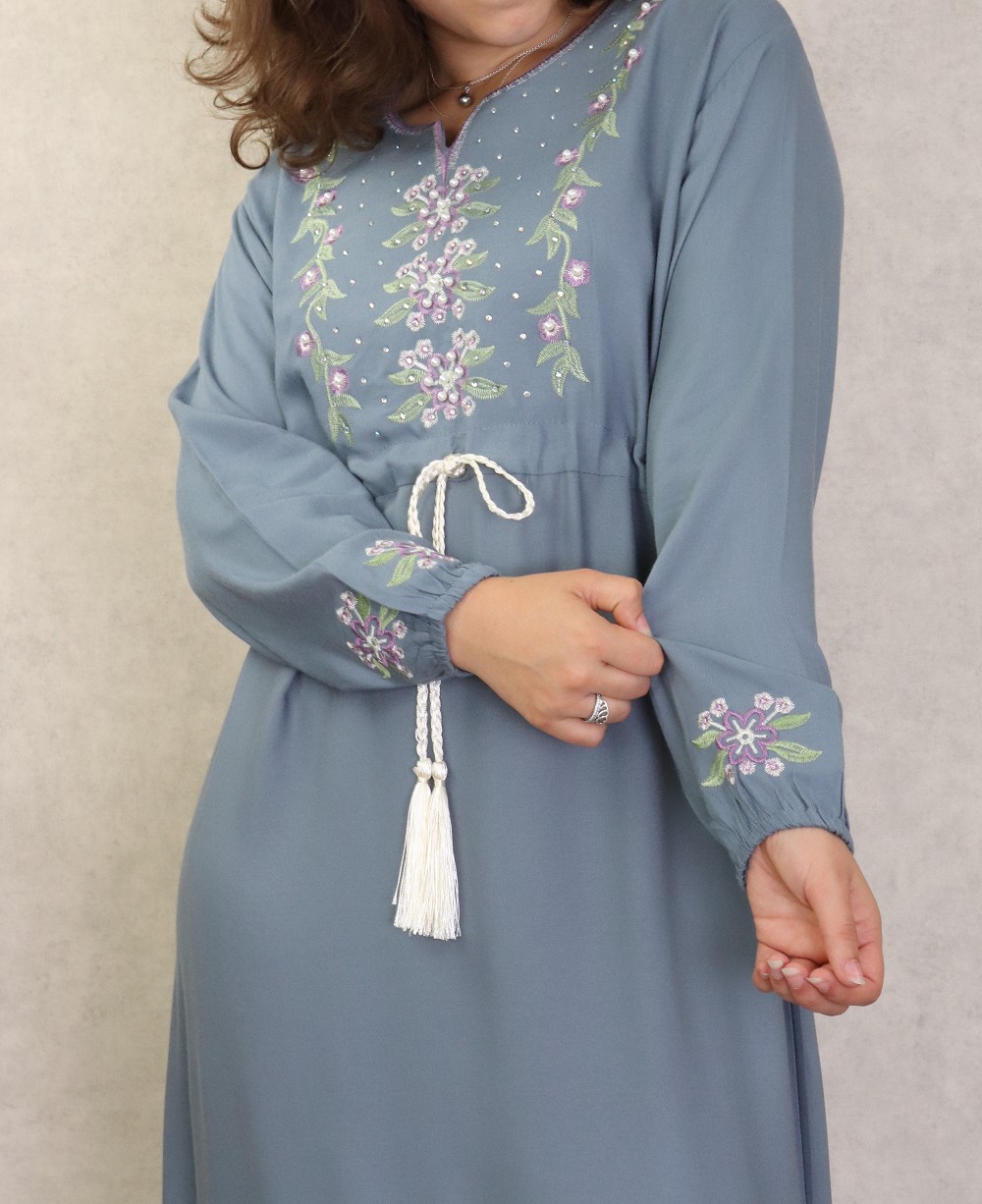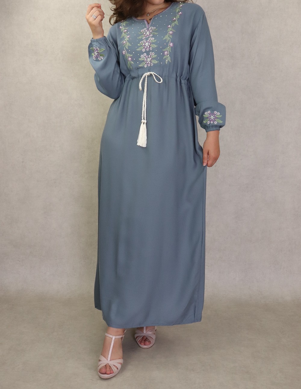 Robe longue brodée avec un lien à la taille pour femme - Couleur Gris Vetement & Accessoire
