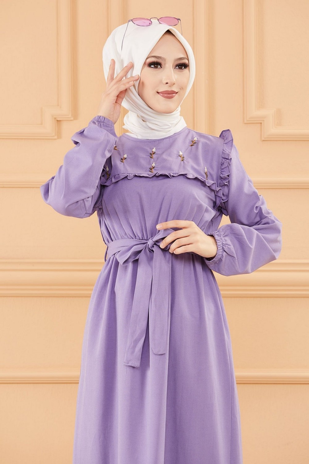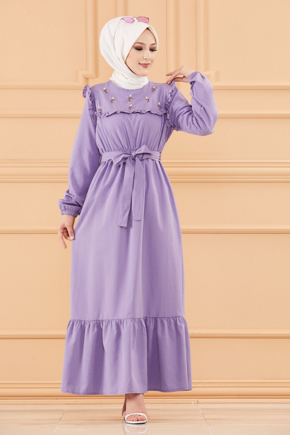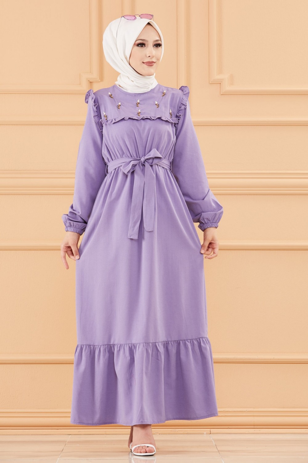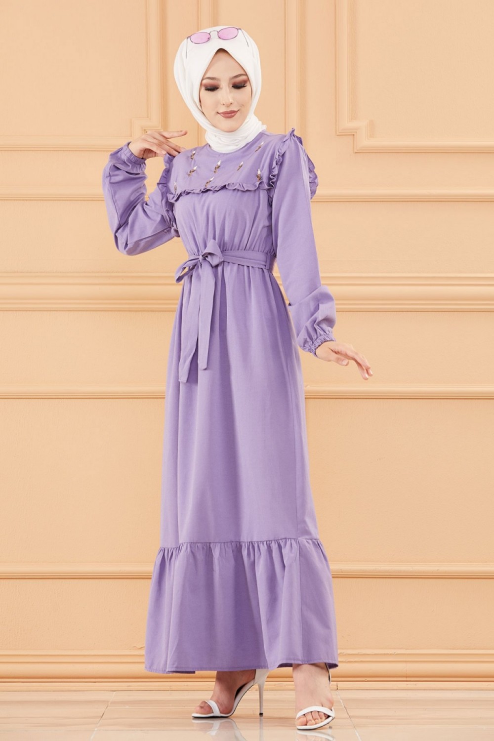Robe brodee (Vetement classique femme voilee) - Couleur lilas