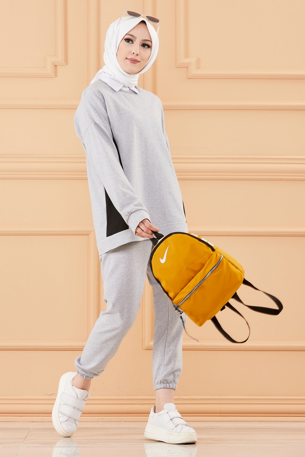 Ensemble decontracte et sport avec parties noires (Vetement pour femme voilee) - Couleur gris
