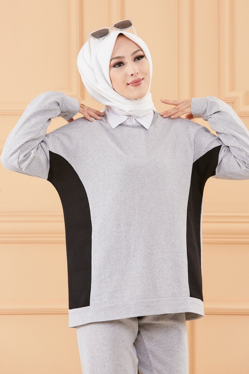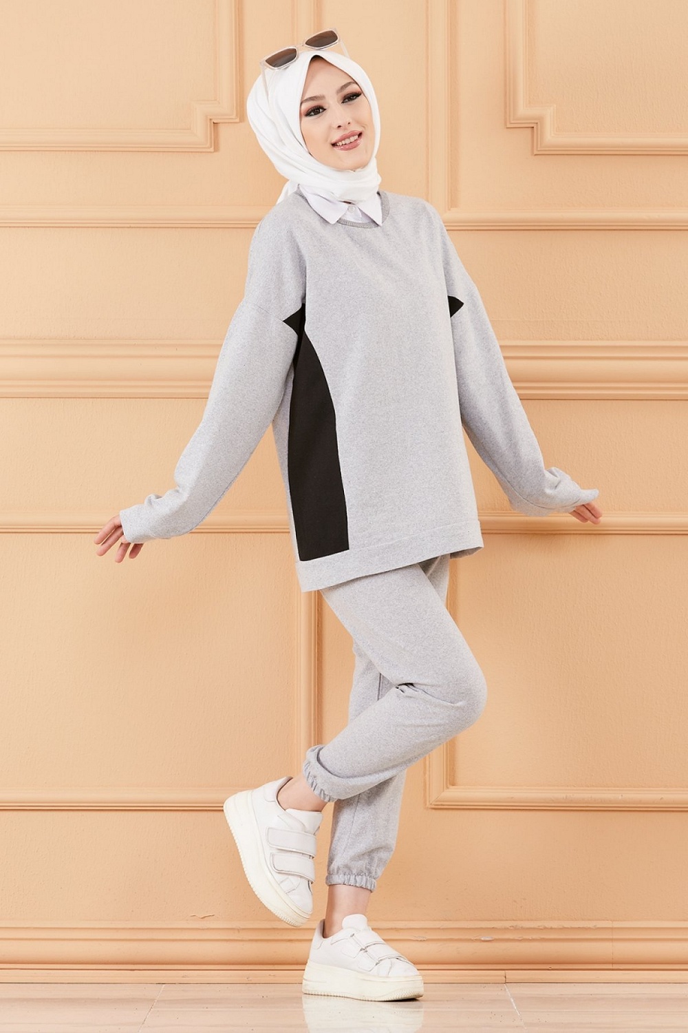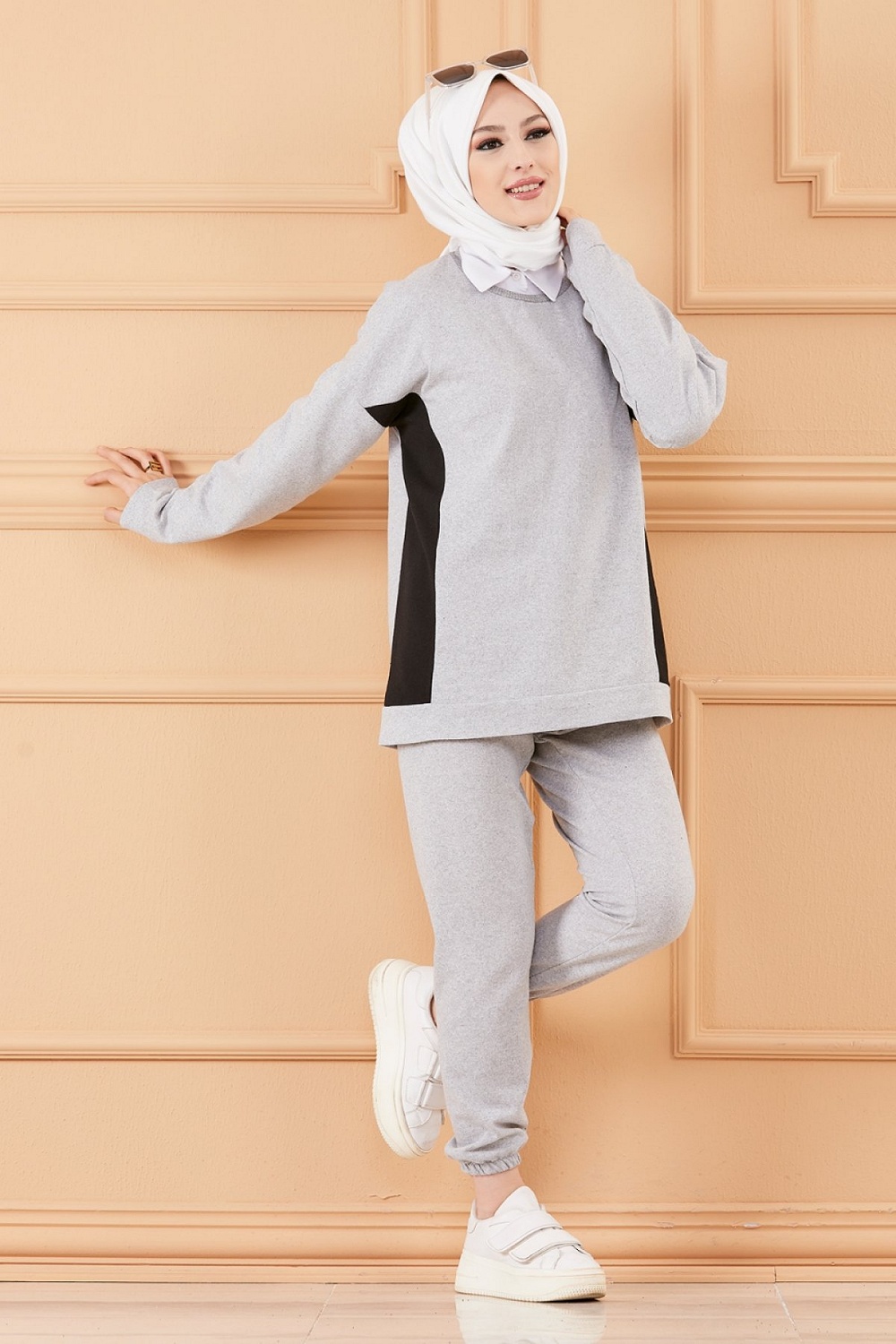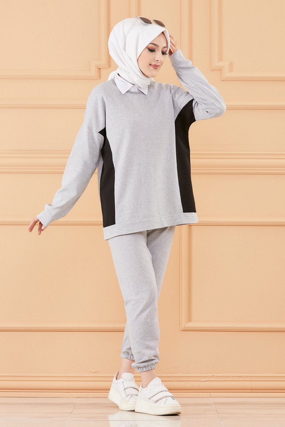 Ensemble décontracté et sport avec parties noires (Vêtement pour femme voilée) - Couleur gris Vetement & Accessoire