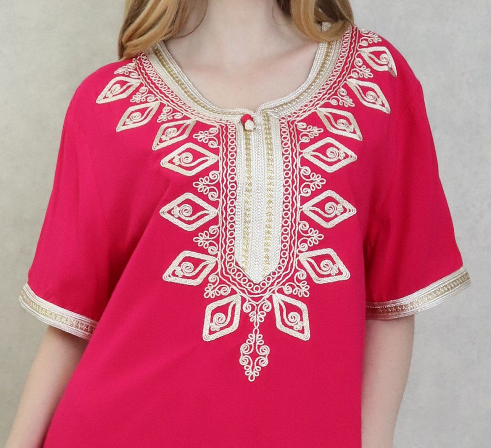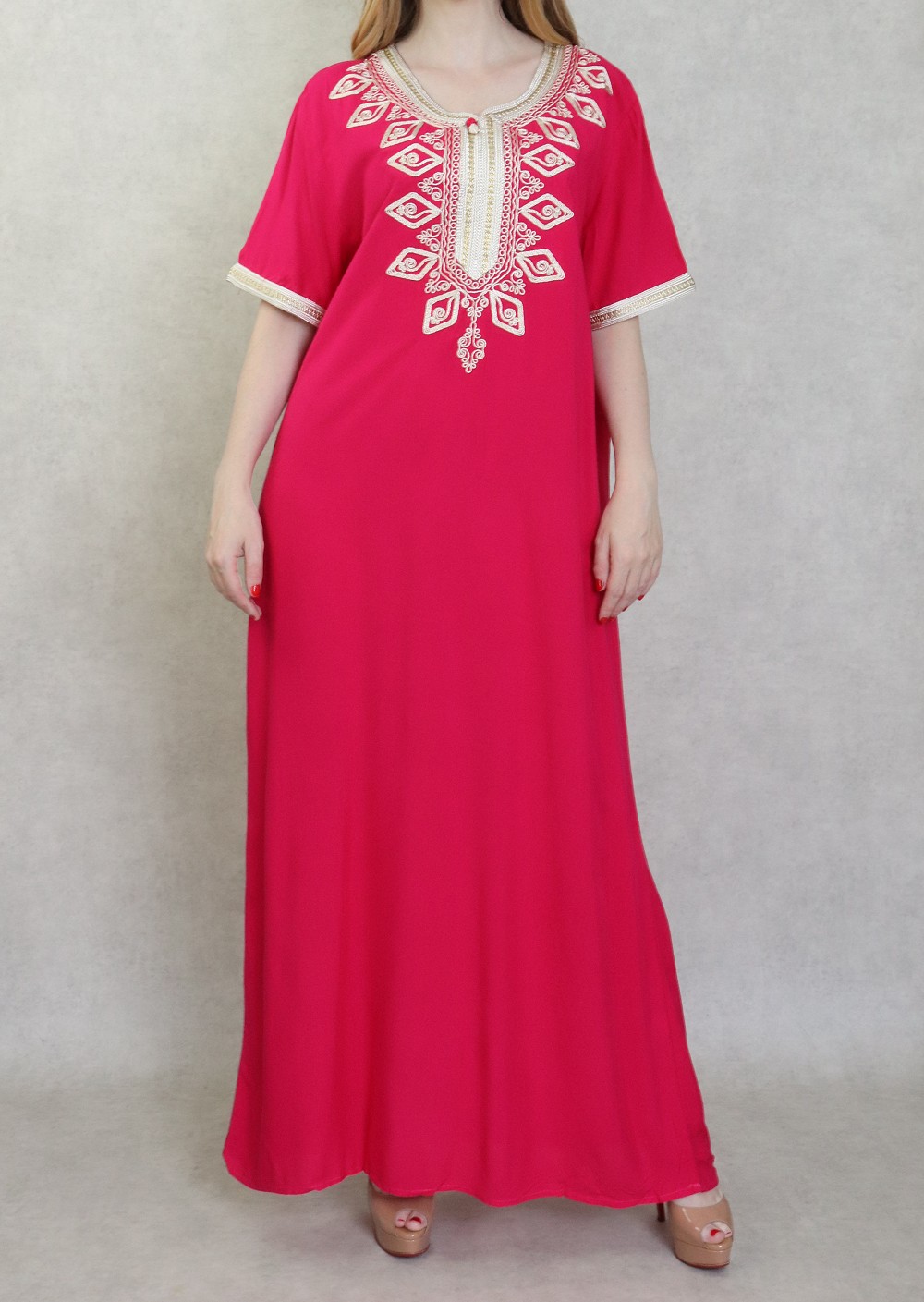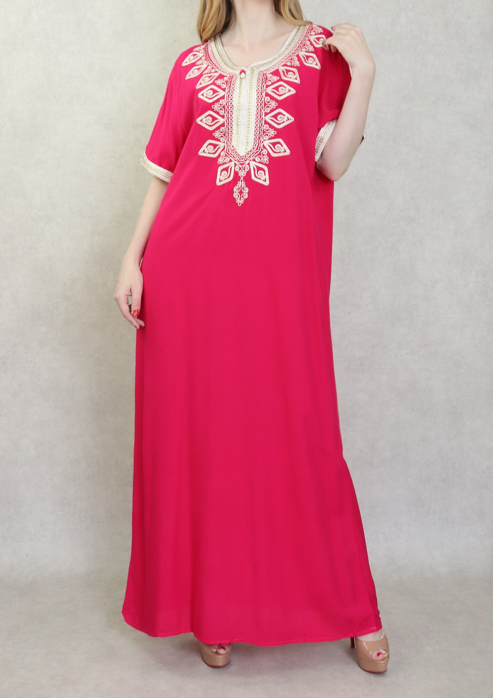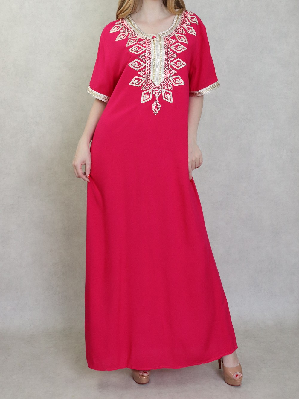 Cette robe orientale à manches courtes, encolure en V, tissu doux type coton et léger vous donnera une allure incroyable.