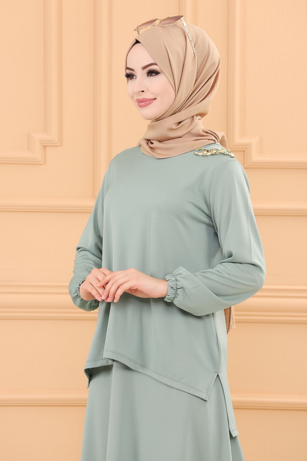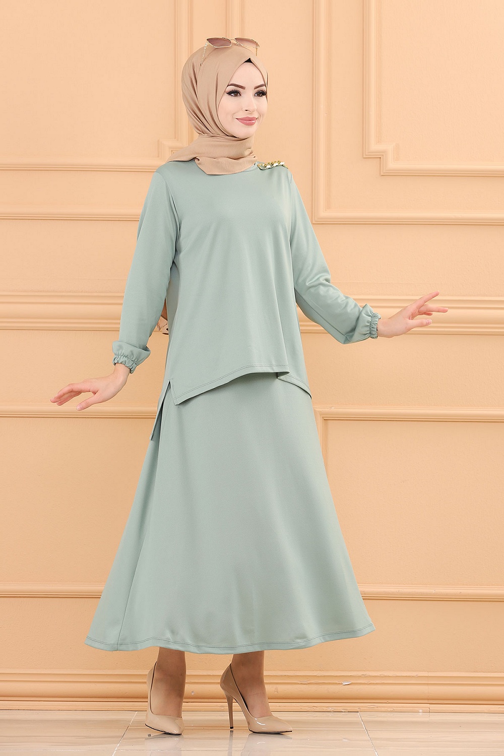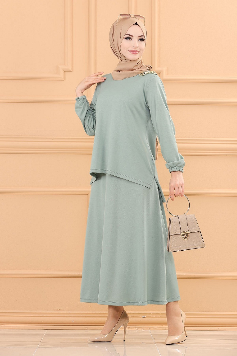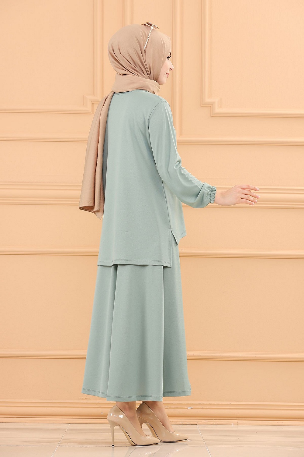Ensemble habillé tunique et jupe (Tenue style hijab et Modest Fashion) - Couleur menthe Vetement & Accessoire