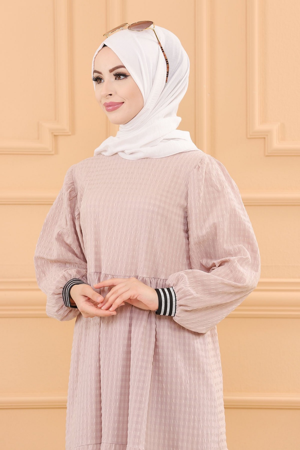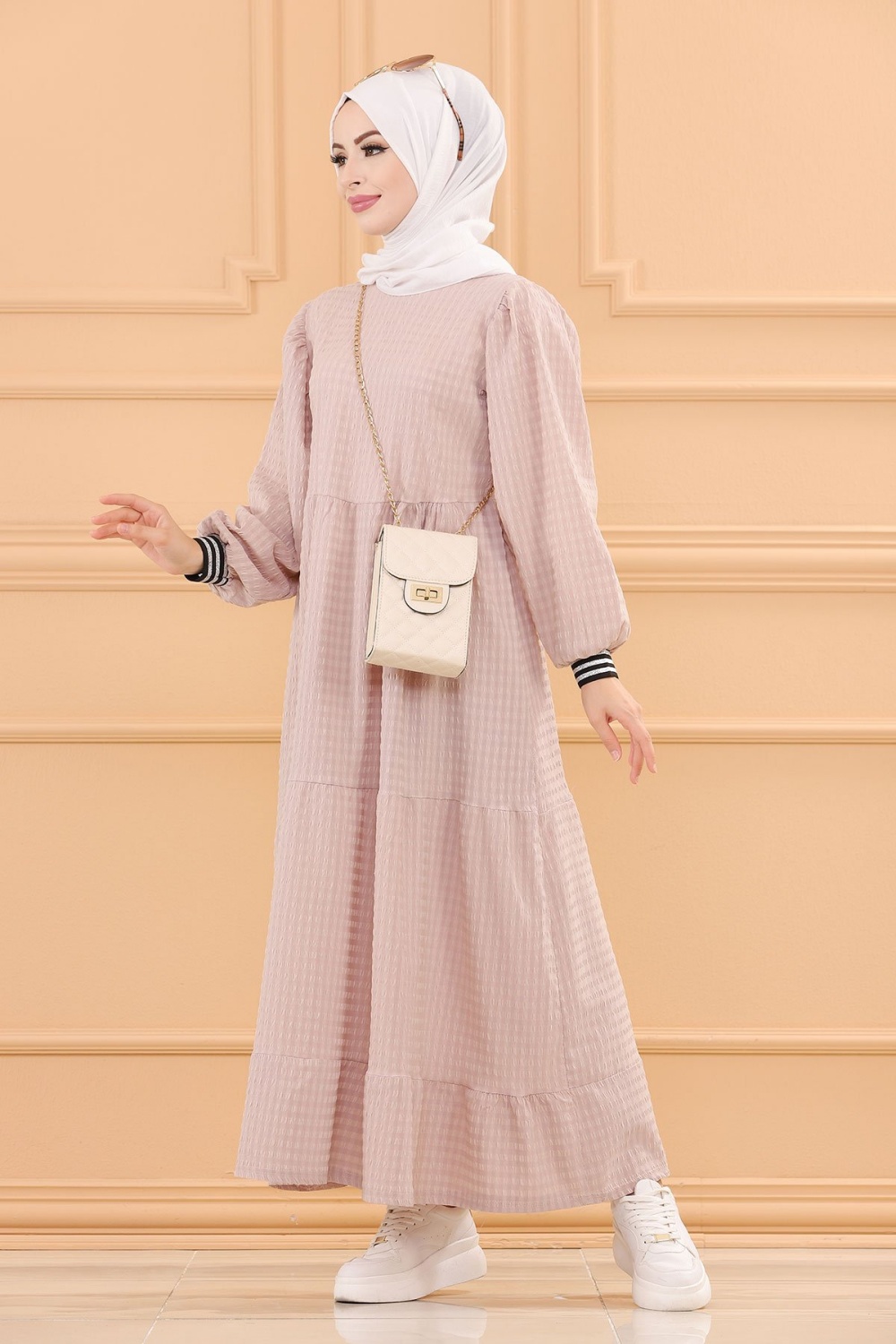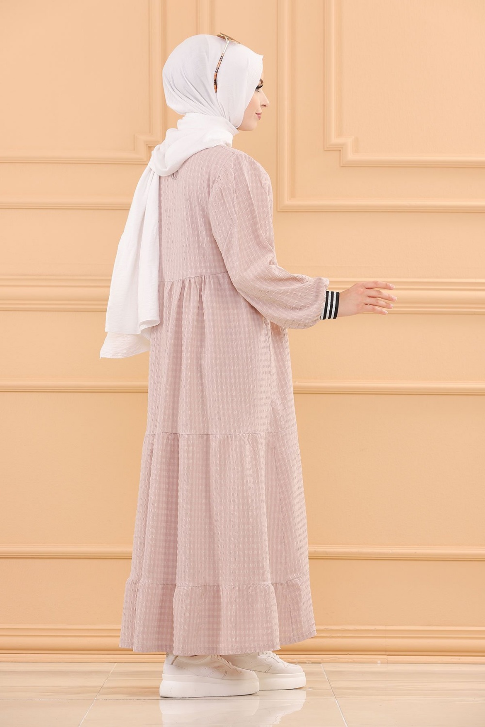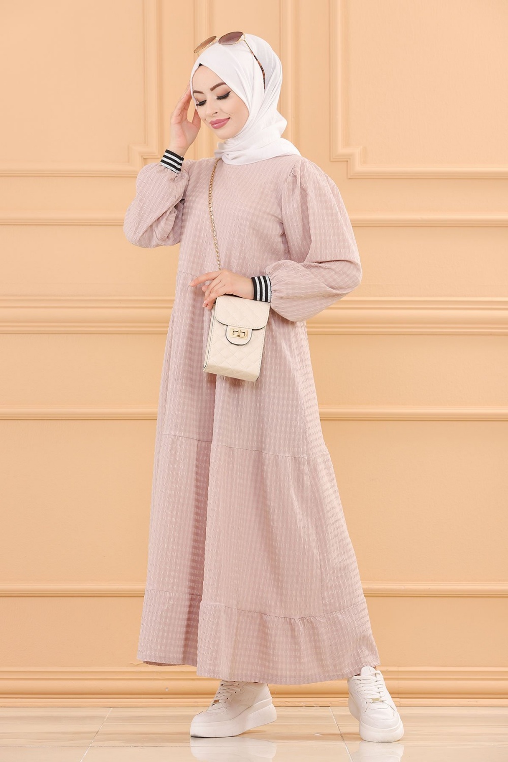 Robe casual longue ample évasée (Mode Modeste) - Couleur rose clair Vetement & Accessoire