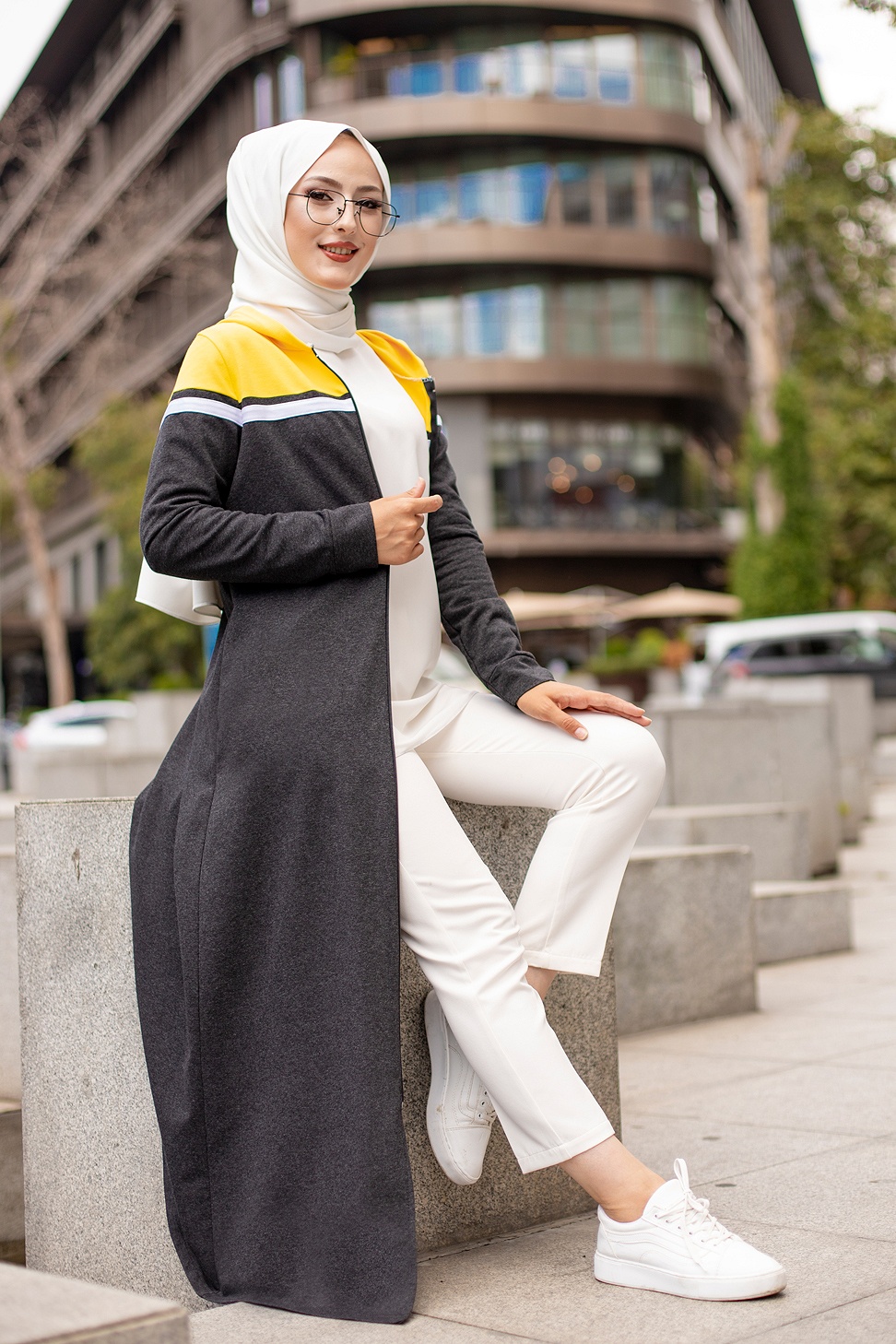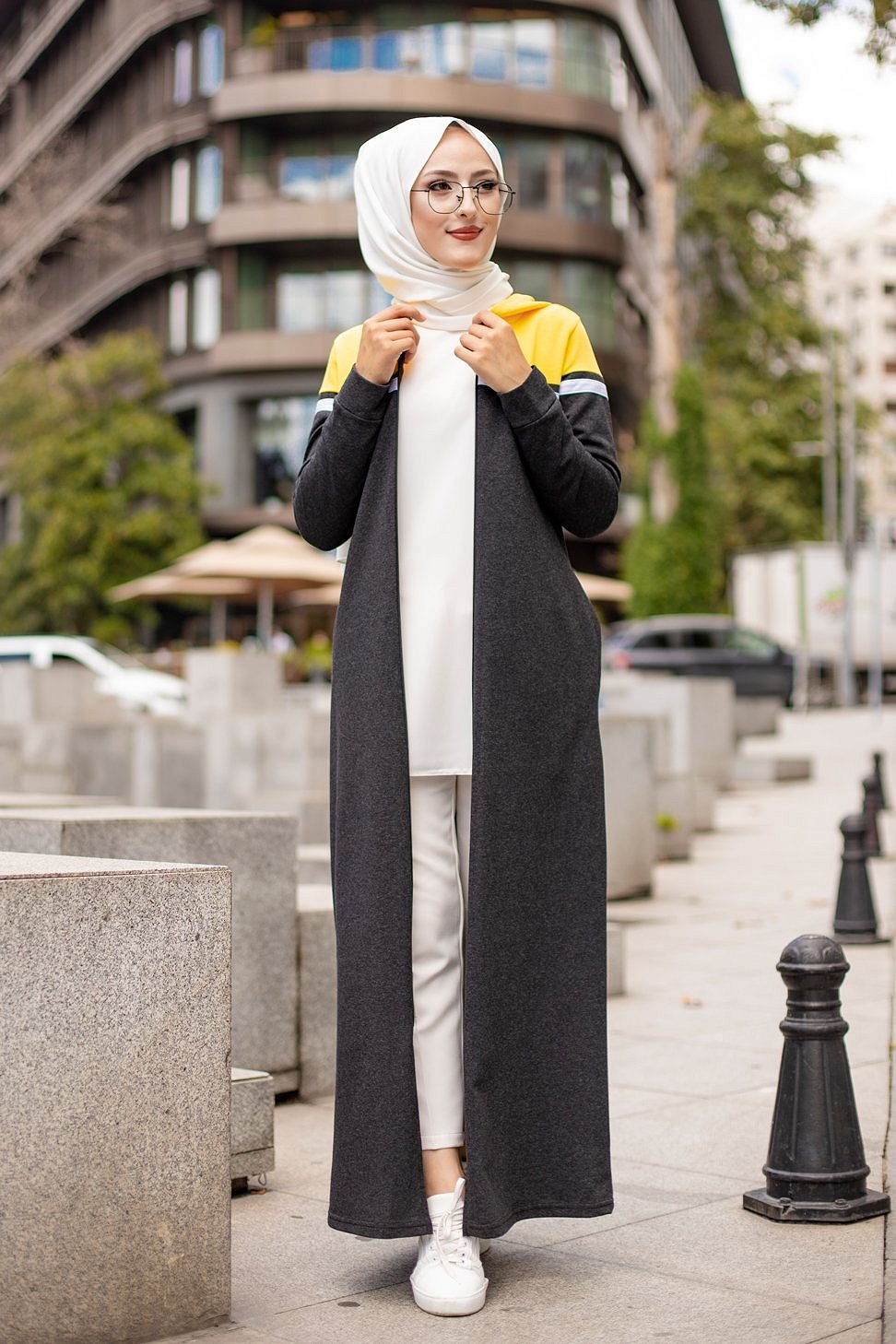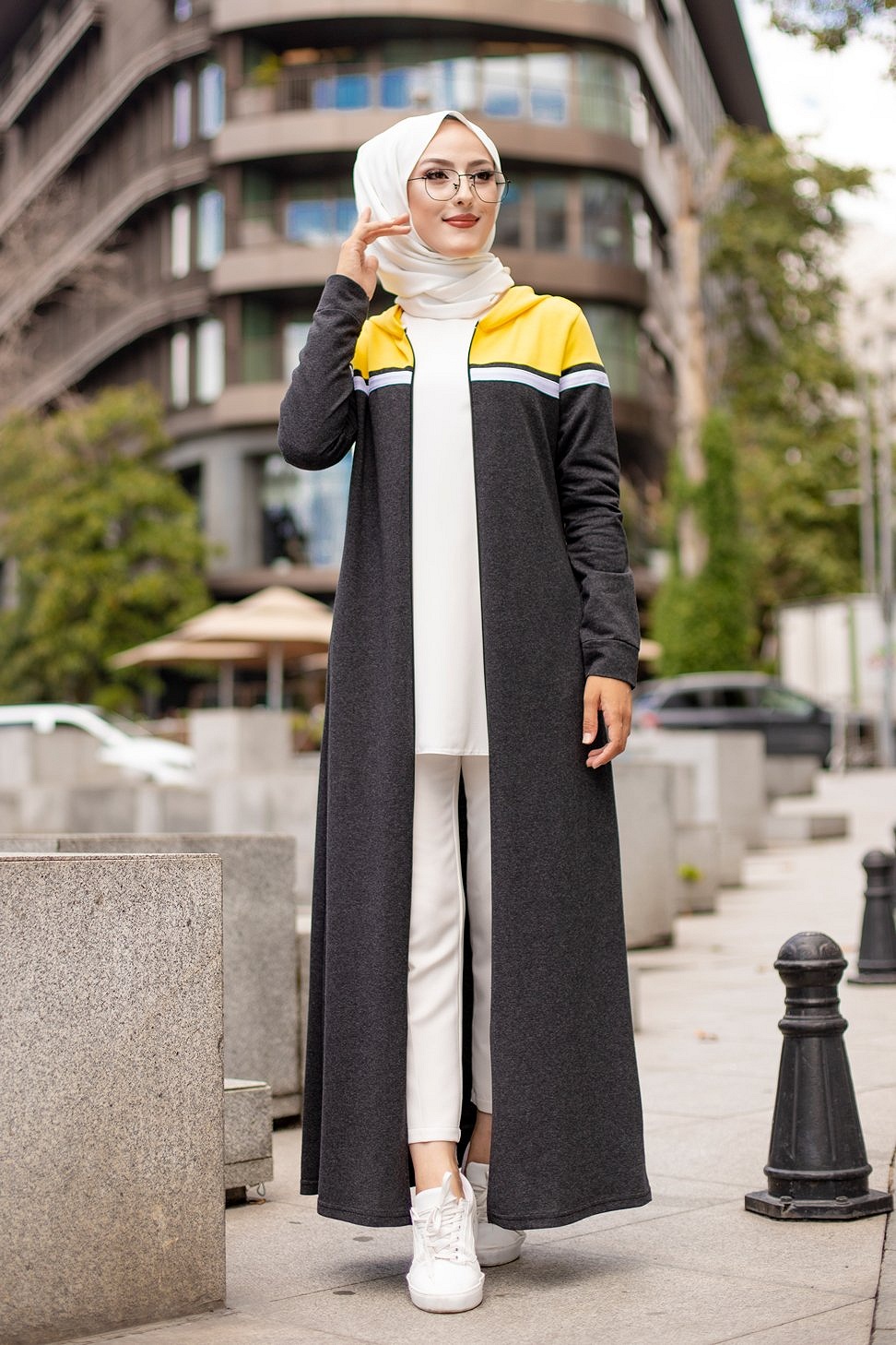 Robe zippée décontractée et sport pour femme (Vêtement Moderne Hijab) - Couleur anthracite et moutarde Vetement & Accessoire