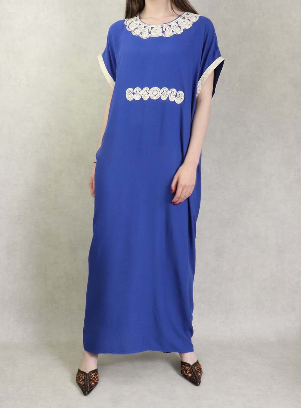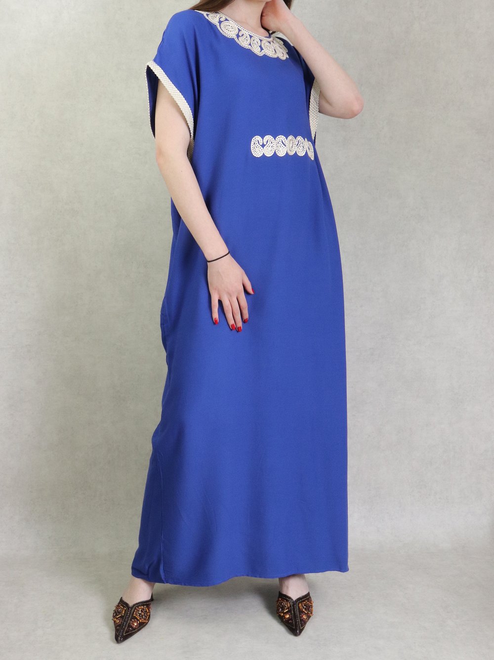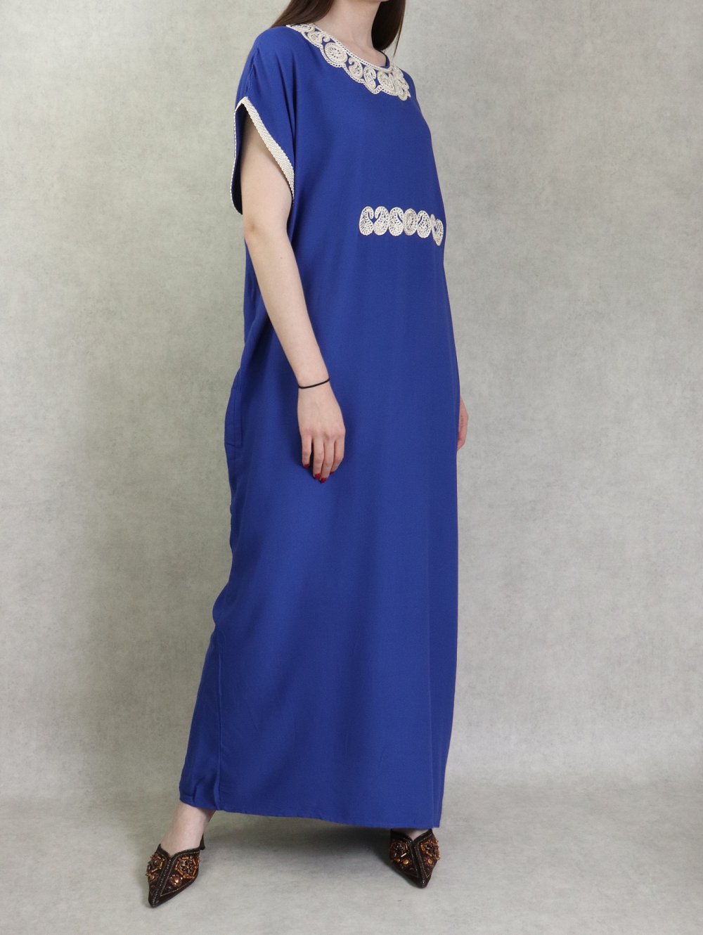 Coupe droite lui donne une allure chic. Broderies au niveau du col, des manches et du ventre. Sa couleur est sobre, elle donne le ton à la tenue.