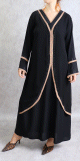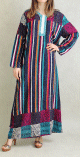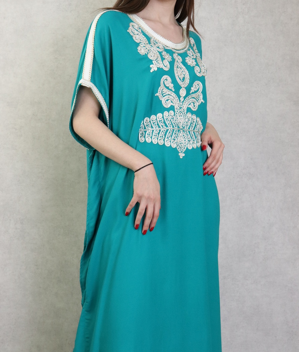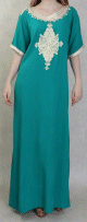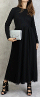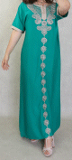 Robe longue, col rond, broderies à base de strasse et de perles sur le buste ainsi qu'à la taille. Coupe droite, tissu doux et fluide.
