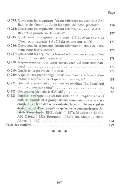 Ce livre est une référence en matière de doctrine que beaucoup de savants l'ont conseillé aux étudiants vu qu'il traite le sujet de dogme avec une facilité remarquable et atteint le noyau de chaque sujet sans rentrer énormément dans les détails et de plus, le livre est à travers des questions / réponses ce qui facilite la compréhension du sujet sans complexité.