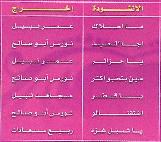 ماأحلاك - أجاالعيد - ياجزائر - مين بتحبواكتر - ياقطر - اشتقنالو - ياشبل غزة