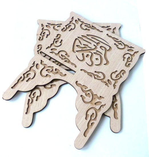 Porte Coran en bois sculpté avec des jolis motifs (Deux pièces qui s’emboîtent de 36 x 25 cm) - Couleur beige Deco & Cadeau