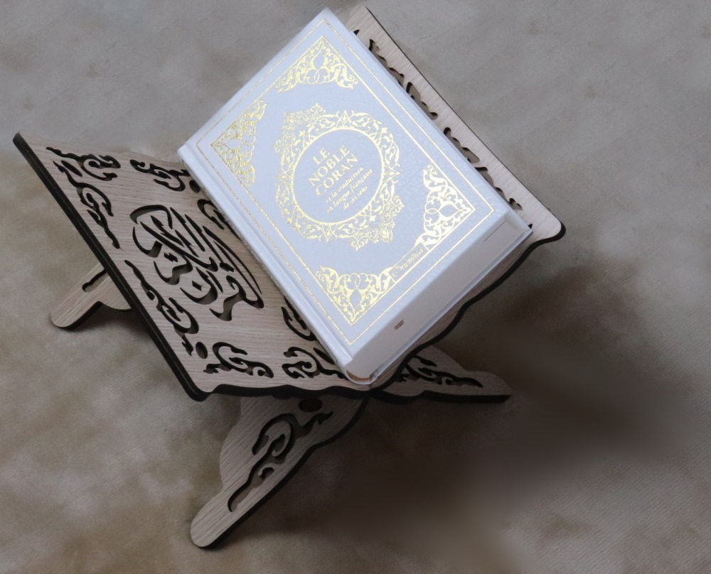 Cet objet artisanal pourrait servir comme porte Coran, mais aussi, il ajoutera à votre intérieur une ambiance pleine d'élévation, en tant qu'objet de décoration.
