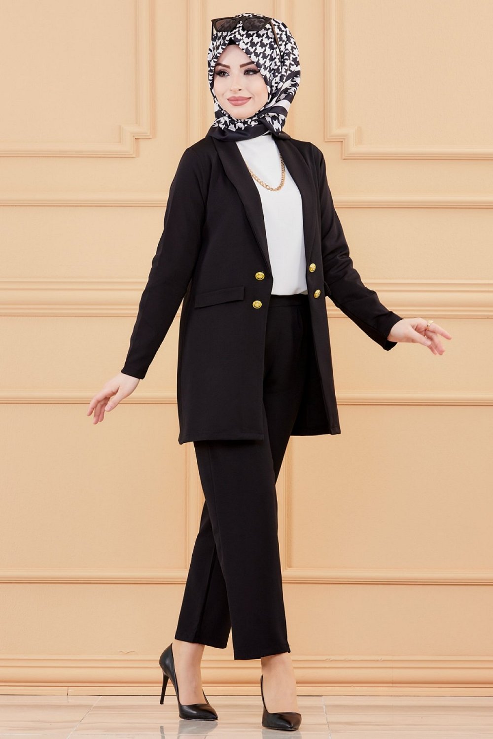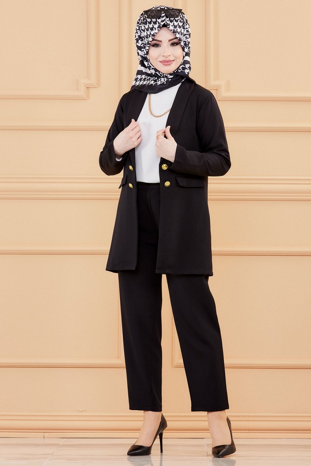 Ensemble Veste et Pantalon femme (Tenue Mode Musulmane France) - Couleur noir Vetement & Accessoire