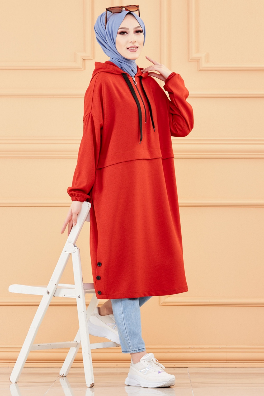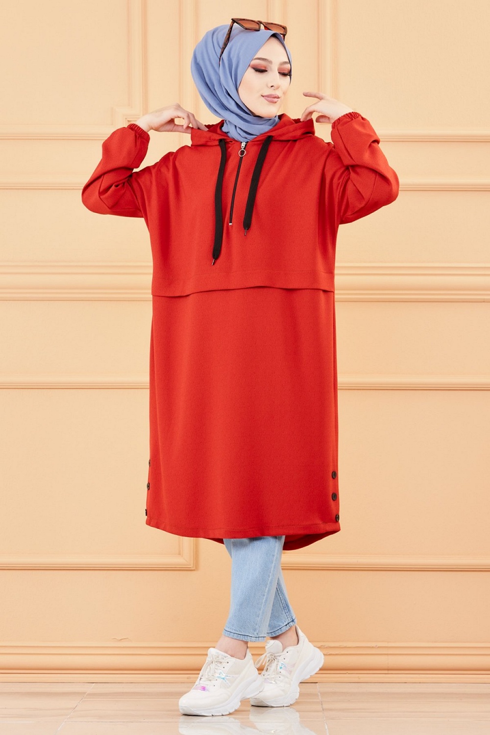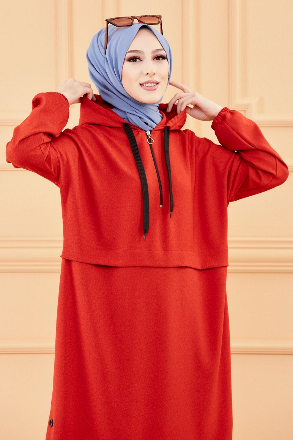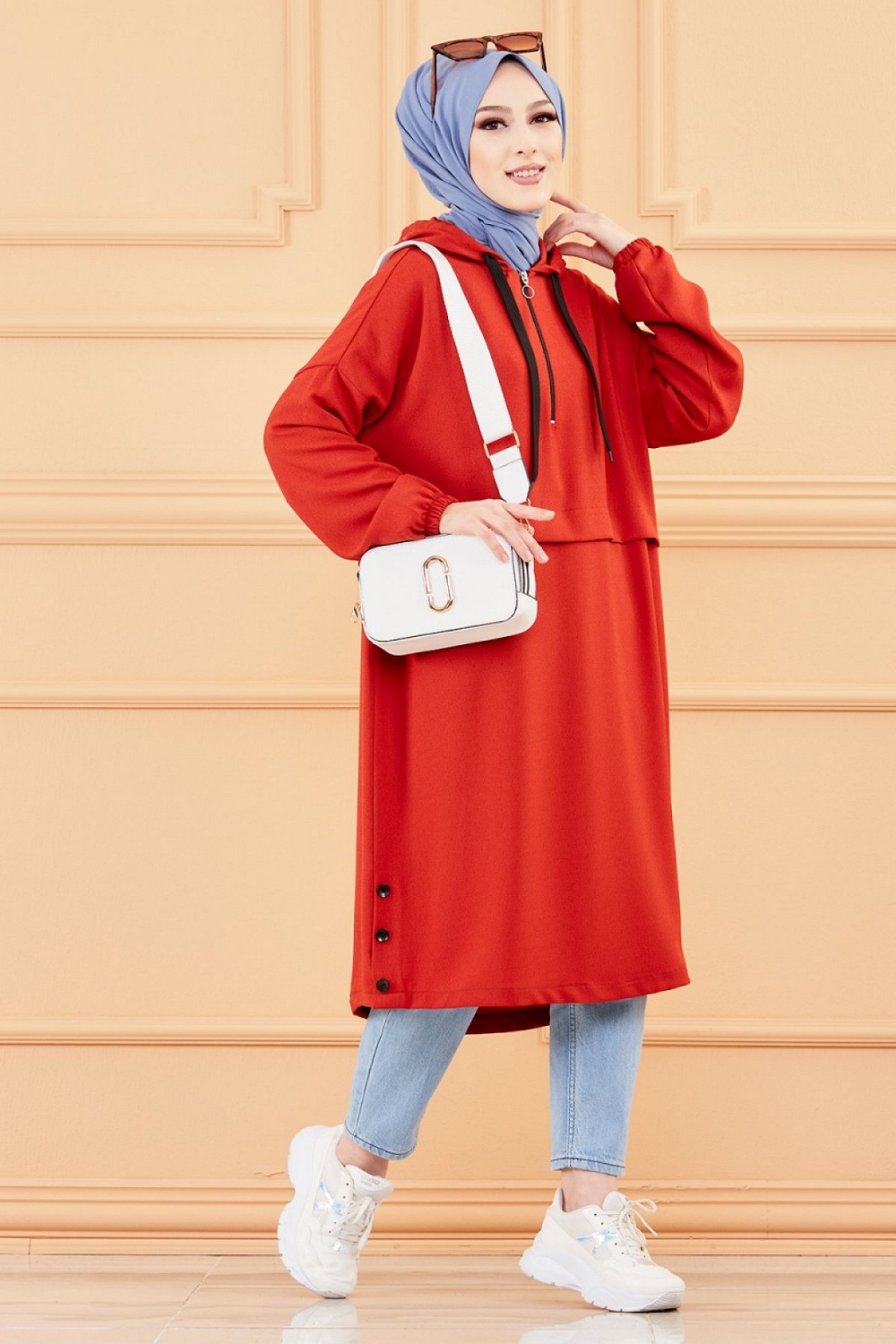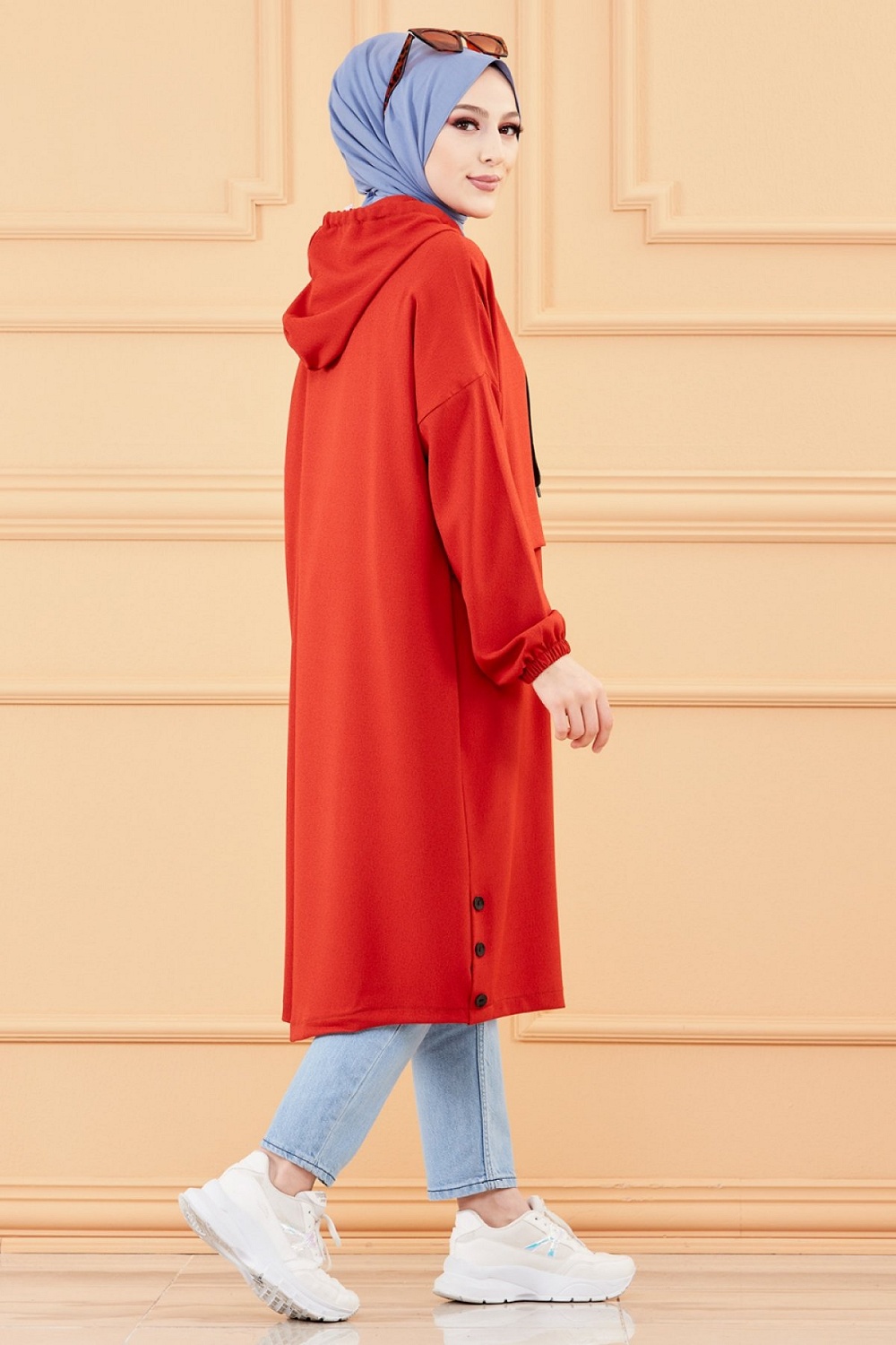 Tunique ample avec capuche (Tenue moderne et sport pour hijab) - Couleur brique Vetement & Accessoire