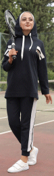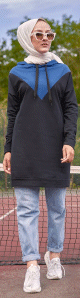 Tunique moderne décontractée et sport avec capuche (Tenue Sportswear Hijab Urban Muslima Wear) - Couleur noir et bleu - REF. 33118 (19.90 €)