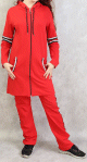 Survêtement femme à capuche de couleur rouge avec bandes tricolores (Grandes tailles) - REF. 31802 (29.90 €) - En Promotion à 24.90 €
