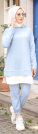 Ensemble décontracté et tenue de sport 2 pièces (Mode islamique pour femme) - Couleur Bleu ciel et blanc - REF. 32843 (25.00 €)