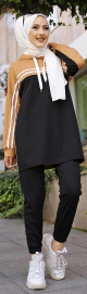 Survêtement femme (Vêtement Sport Hijab en ligne ) - Couleur noir et beige - REF. 35172 (28.00 €)