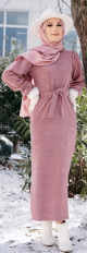 Robe tissu polaire avec ceinture (Vêtement Hijab Saison Automne-Hiver) - Couleur saumon - REF. 35697 (26.90 €)