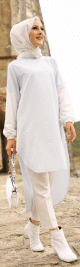 Tunique décontractée avec capuche (Sweat long pour hijab) - Couleur anthracite avec bandes blanches - REF. 35609 (19.00 €)