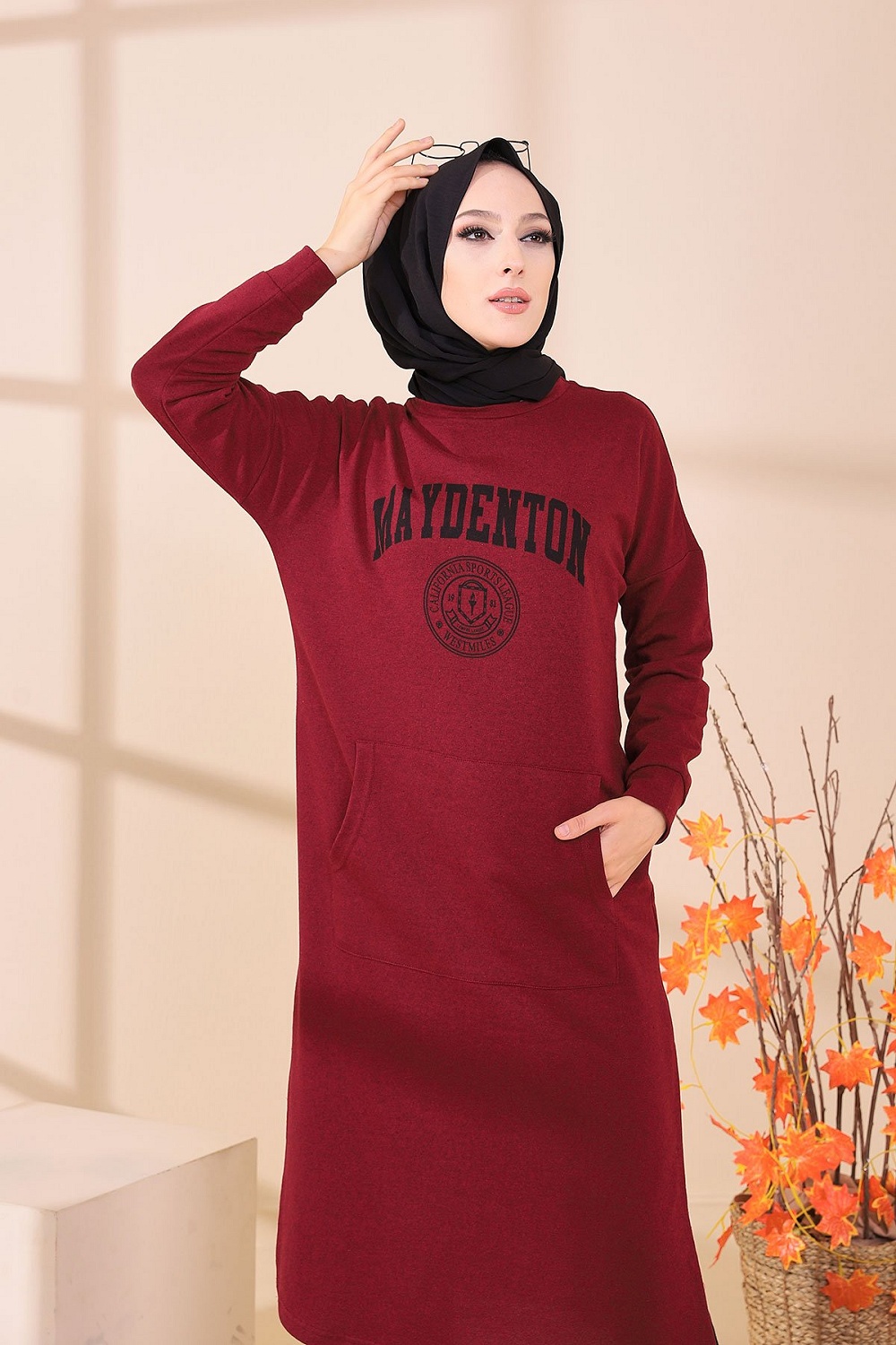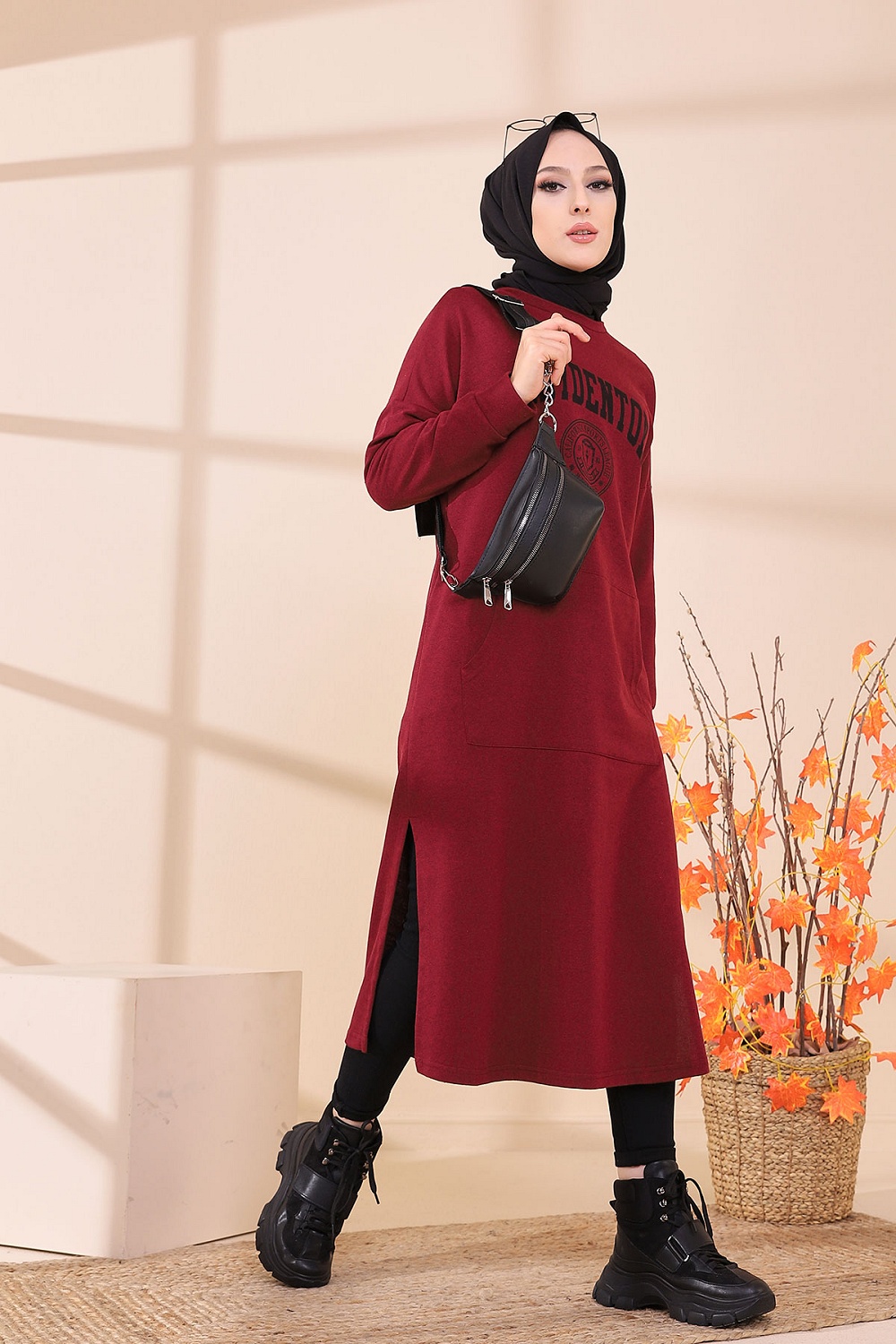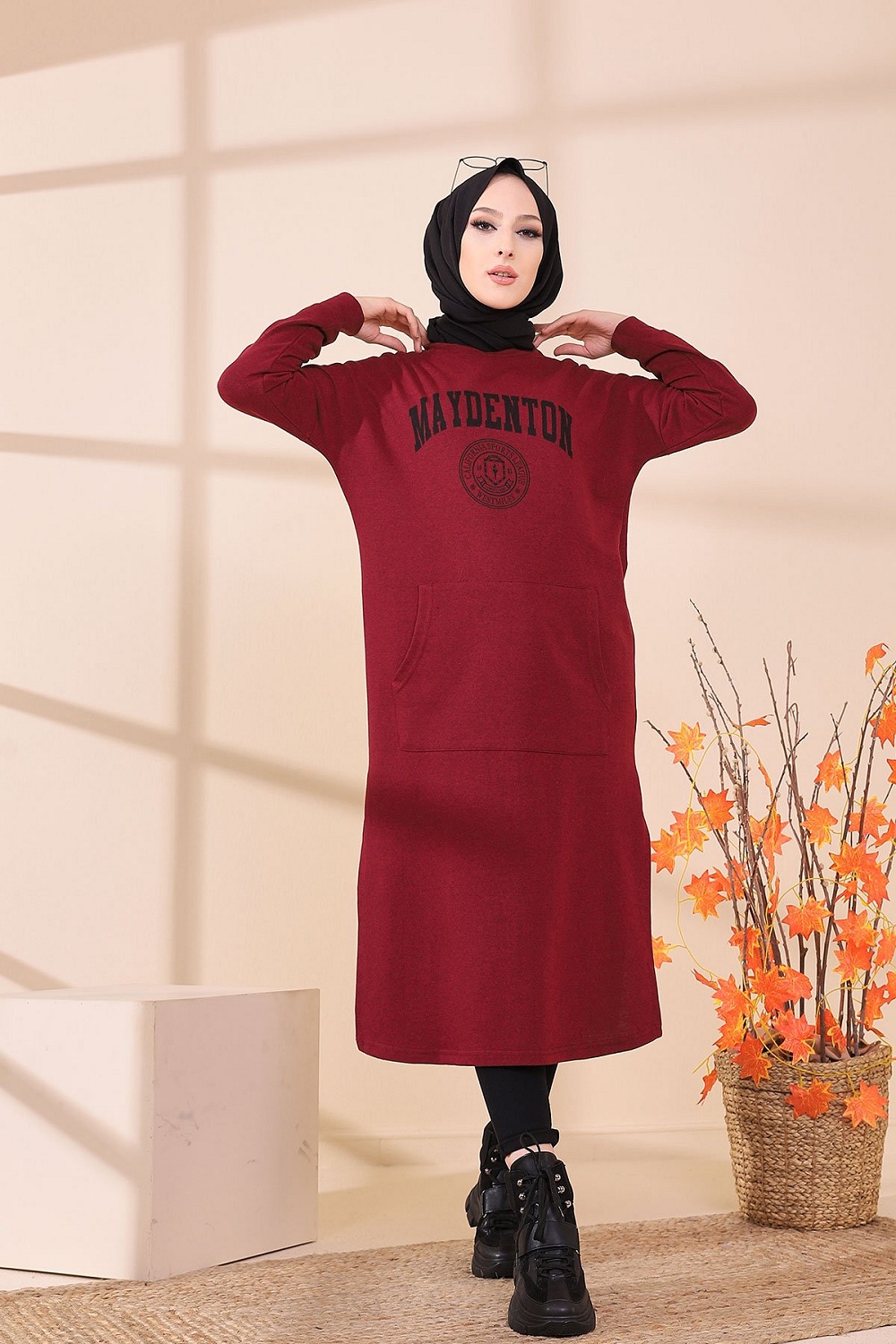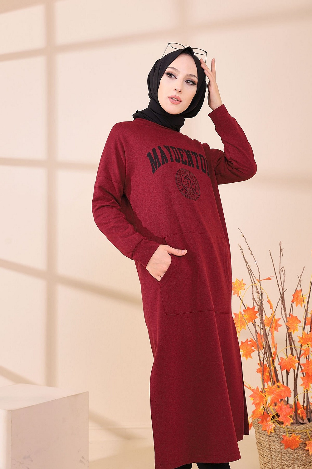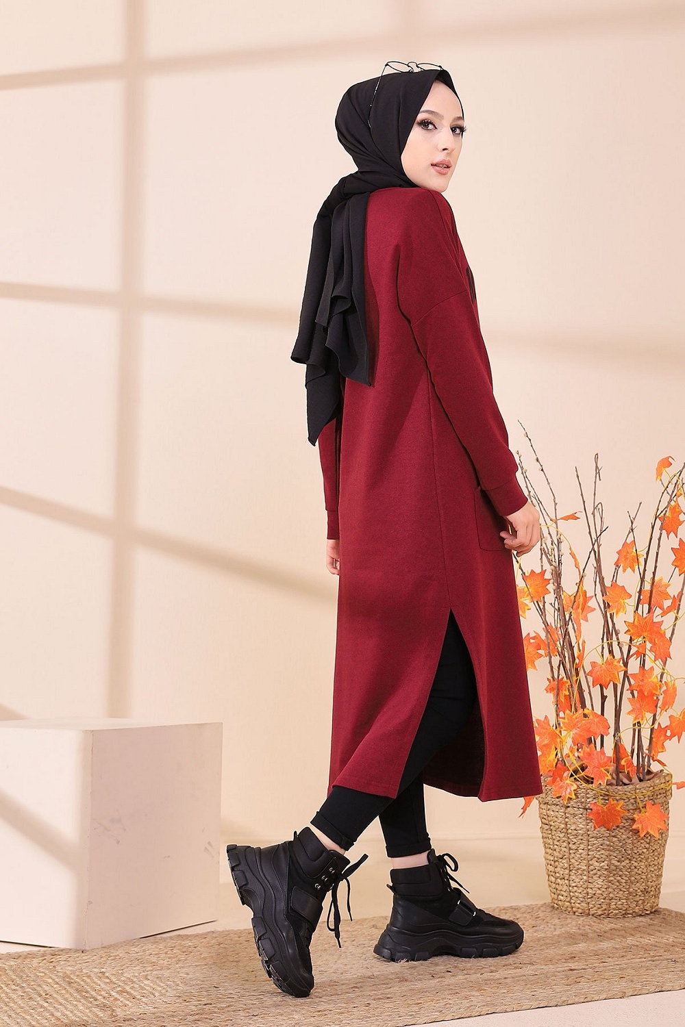 Robe - Tunique longue décontractée pour femme (Vêtement Hijab Moderne et Sport) - Couleur bordeaux Vetement & Accessoire