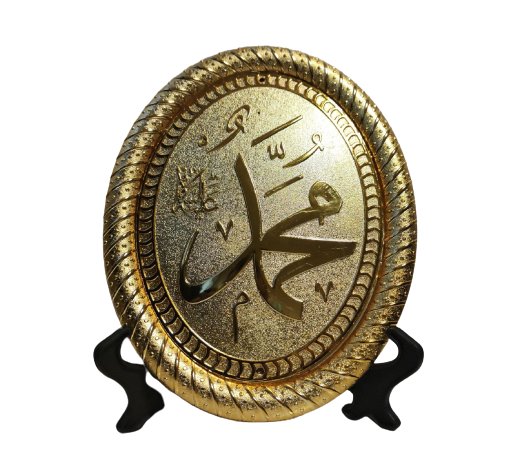 Tableau islamique doré Ovale Sous Forme de bouclier avec inscription calligraphie du nom du prophète MOHAMMED saw.