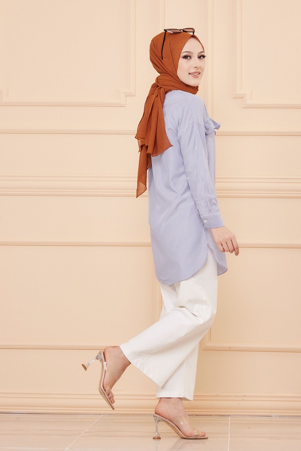 Tunique à froufrous pour femme (Tenue Hidjab) - Rayures couleur bleu Vetement & Accessoire
