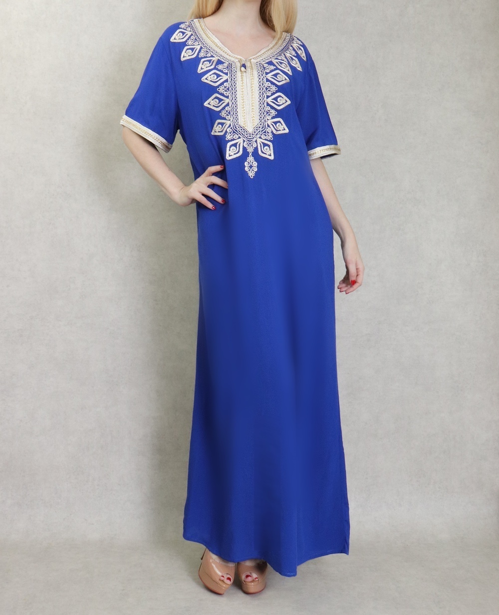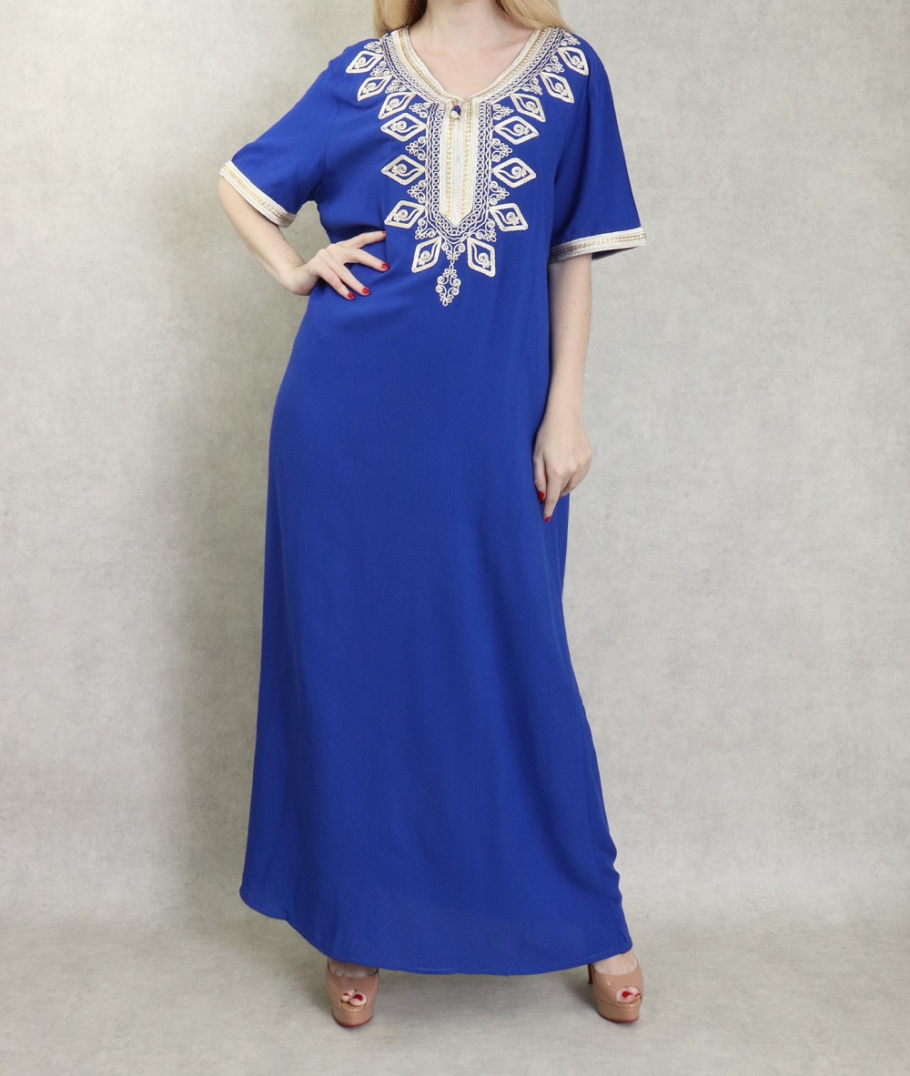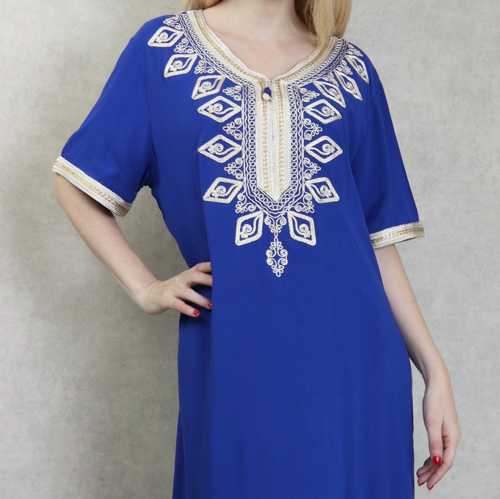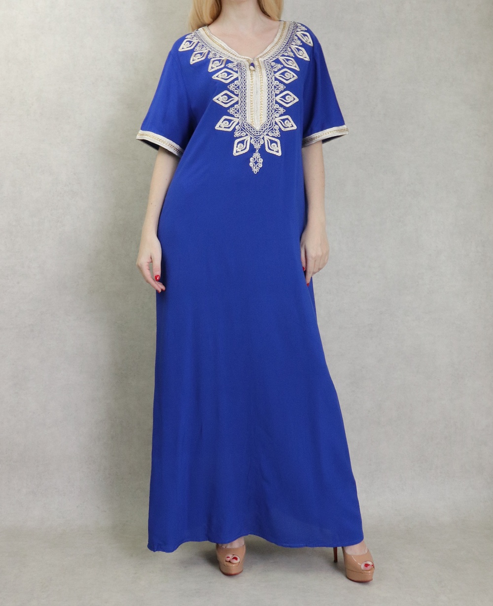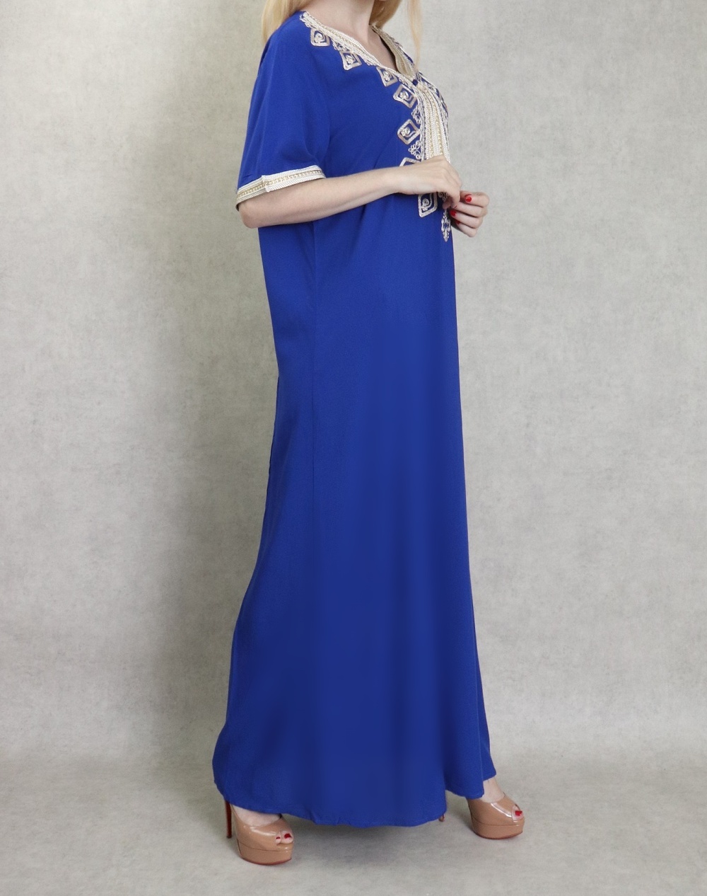 Cette robe orientale à manches courtes, encolure en V, tissu doux type coton et léger vous donnera une allure incroyable.