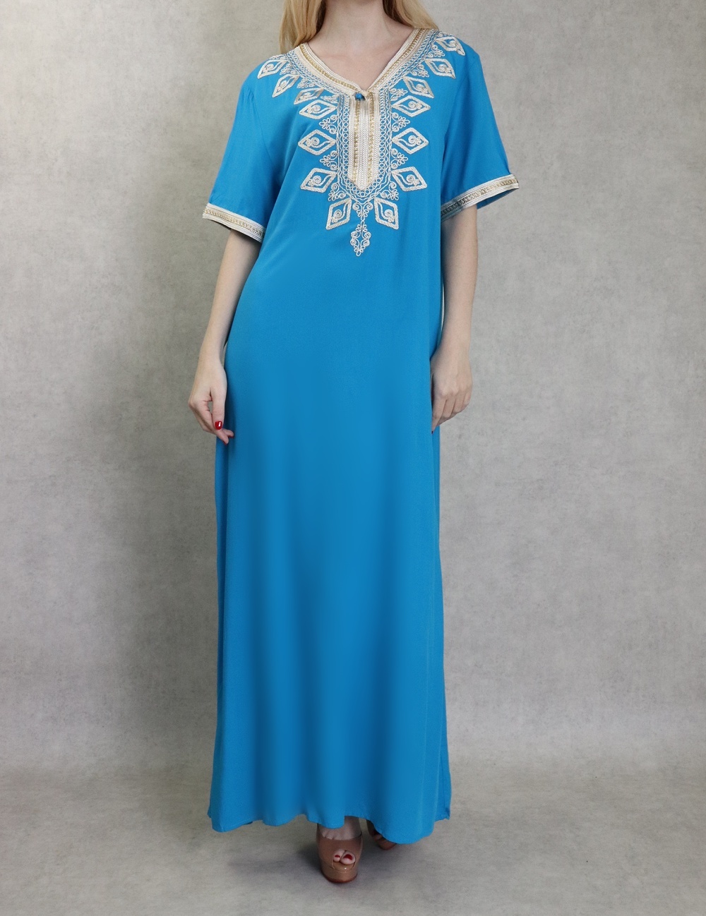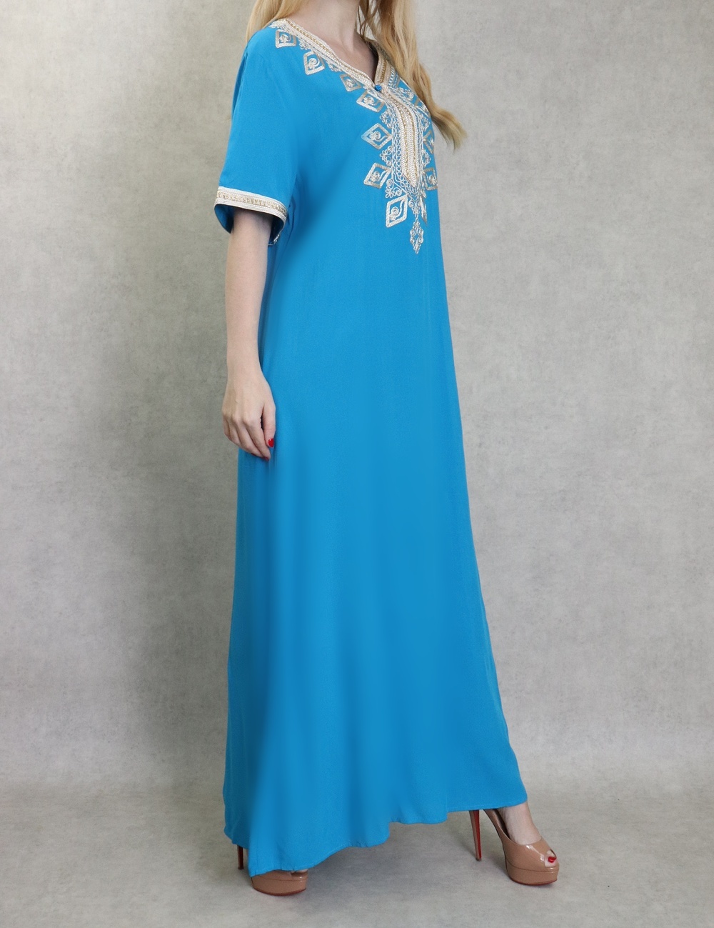 Robe orientale longue avec borderies pour femme - Couleur bleu turquoise Vetement & Accessoire