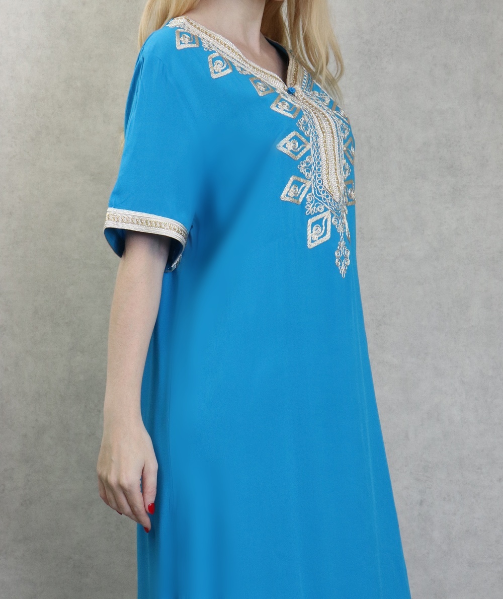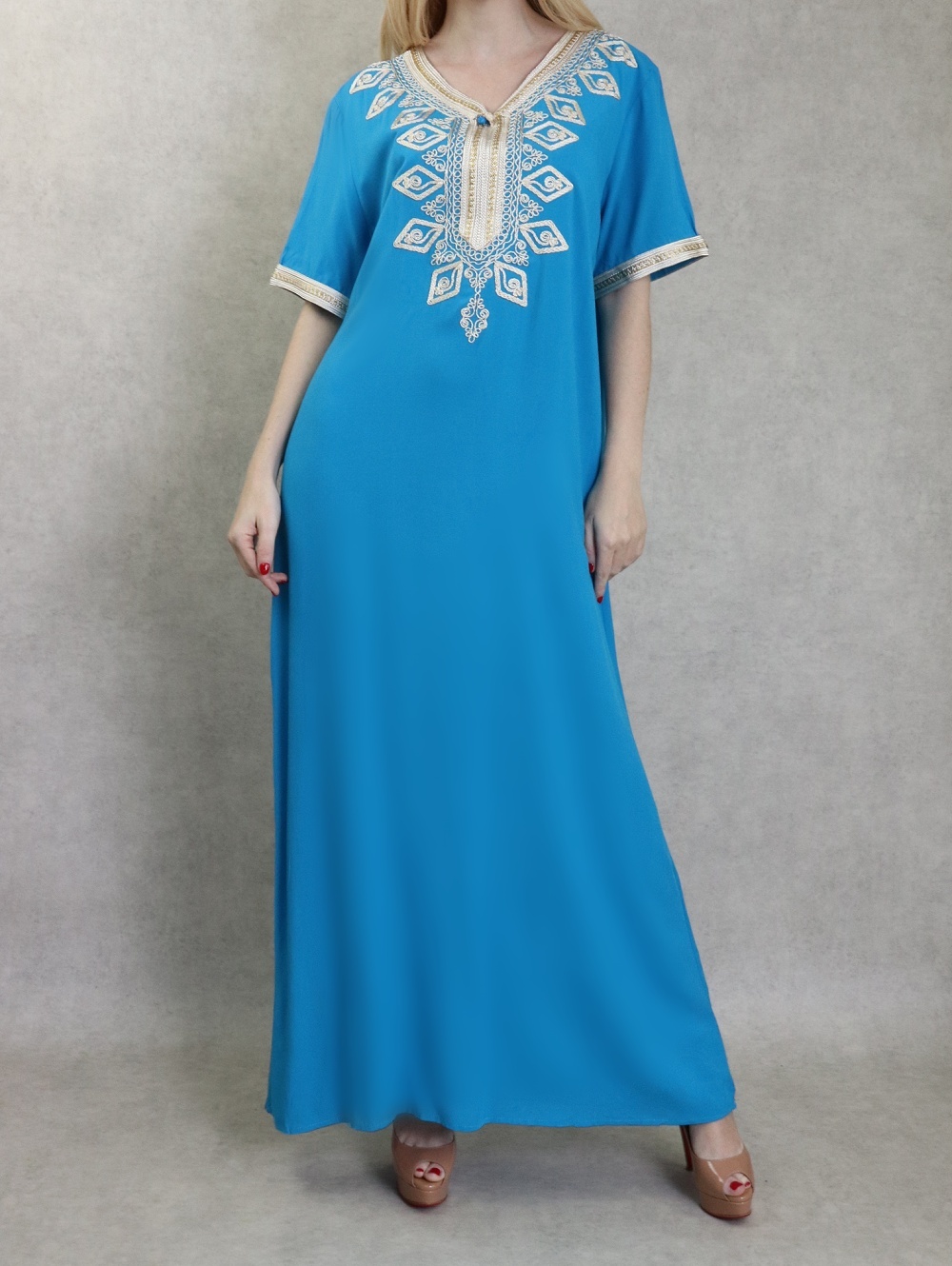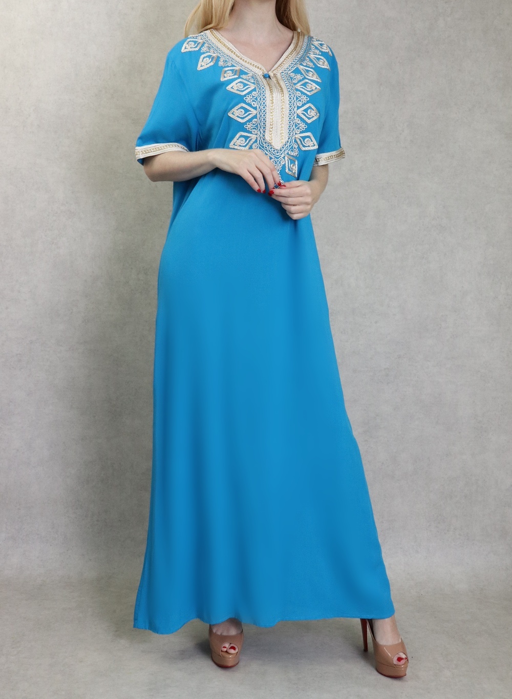 Robe Algérienne à manches courtes avec broderies - Couleur Bleu roi - REF. 37179 (19.90 €)