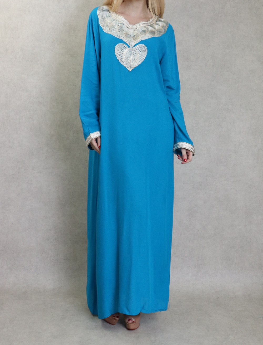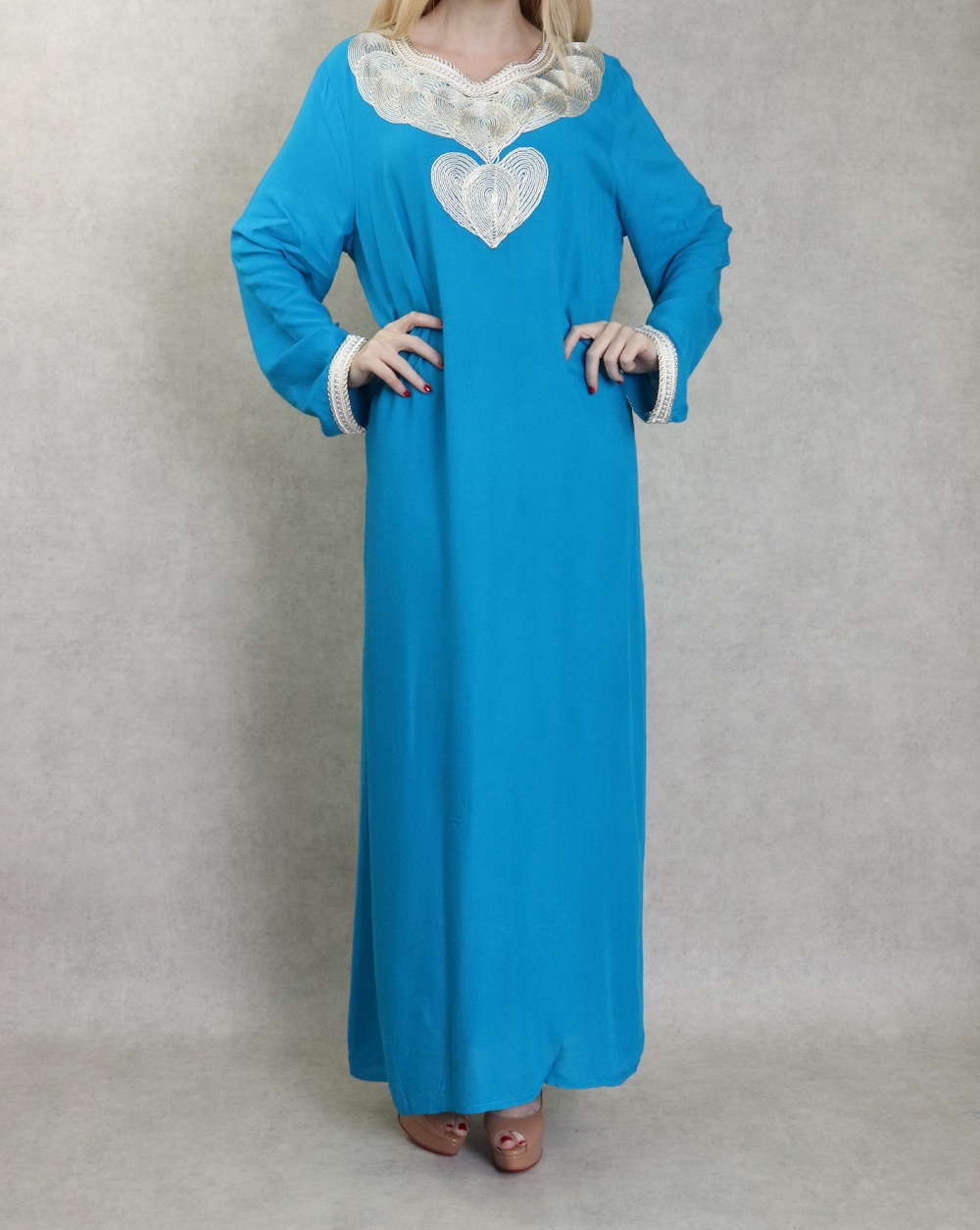 Robe longue style oriental avec borderie originale sous forme de coeur pour femme - Couleur bleu