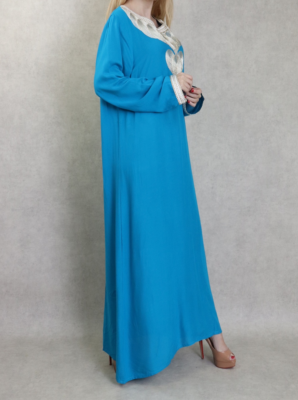 Robe orientale longue pour femme avec perles et broderies 100% coton - Couleur bleu turquoise - REF. 33447 (25.00 €)