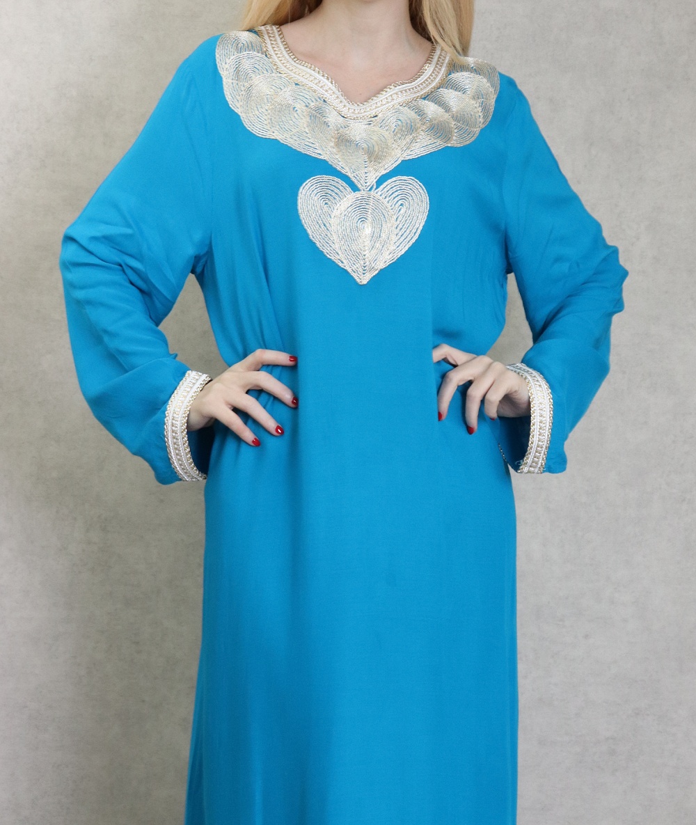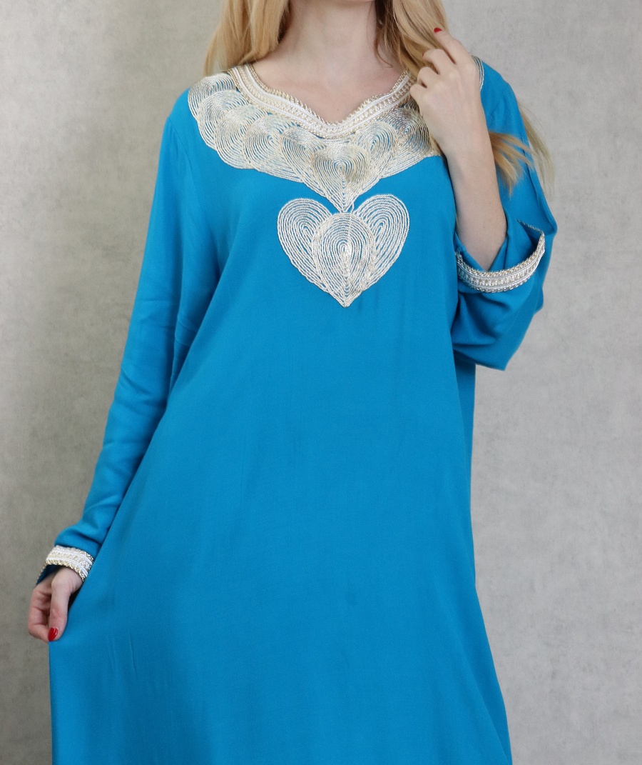 Robe longue style oriental avec borderie originale sous forme de coeur pour femme - Couleur bleu Vetement & Accessoire