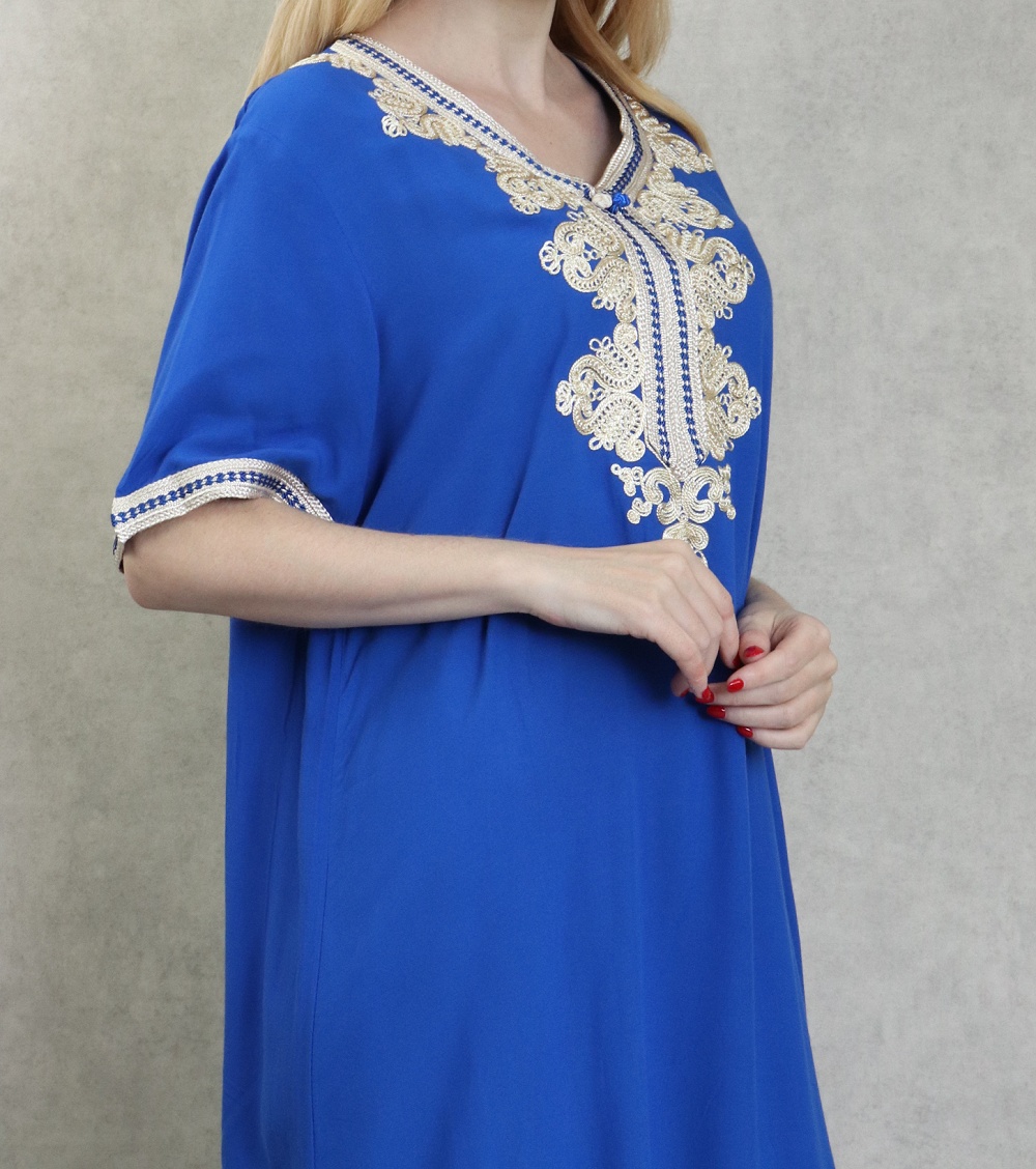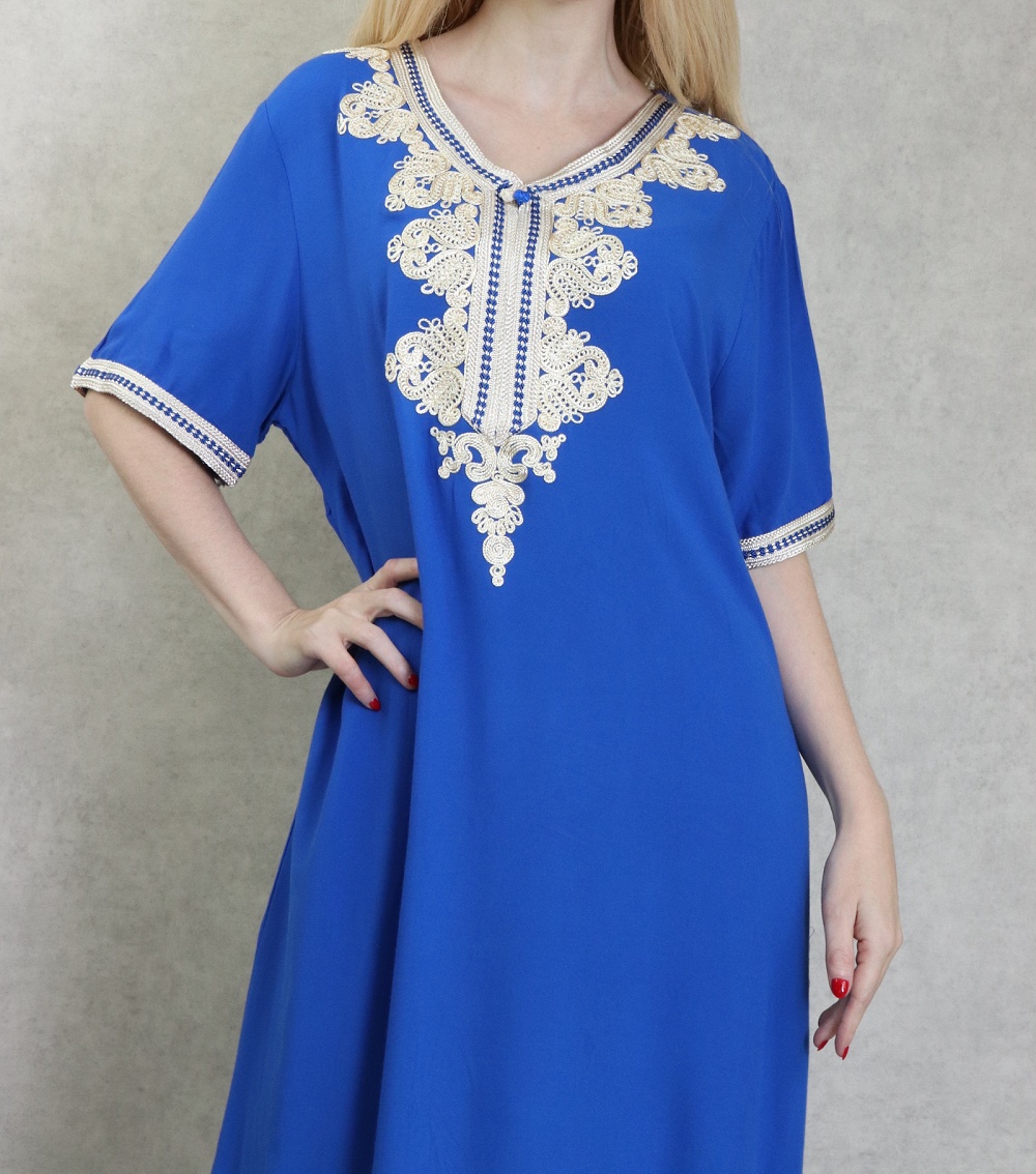 Robe Algérienne à manches courtes avec broderies - Couleur Bleu roi - REF. 37179 (19.90 €)