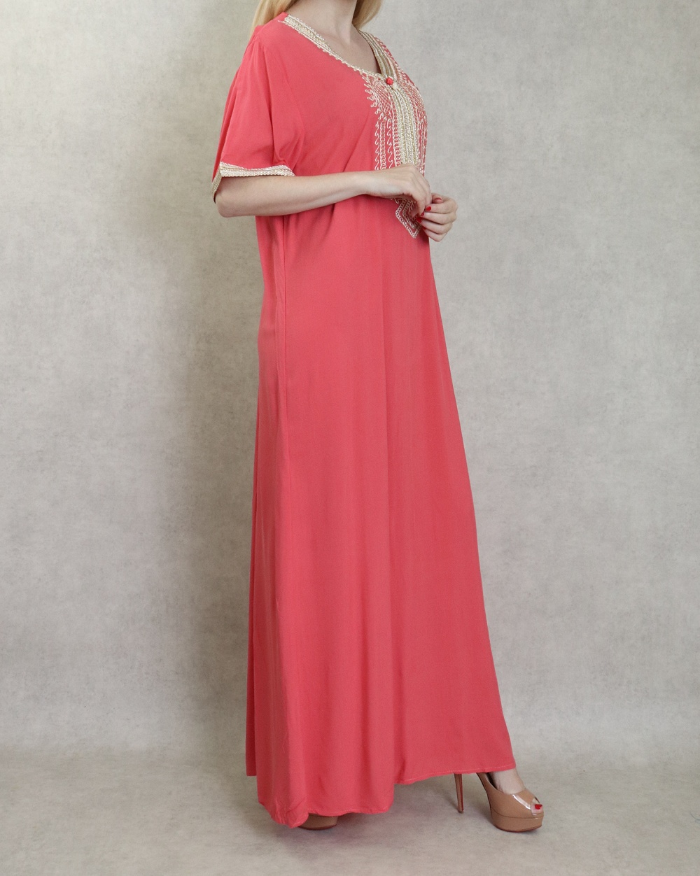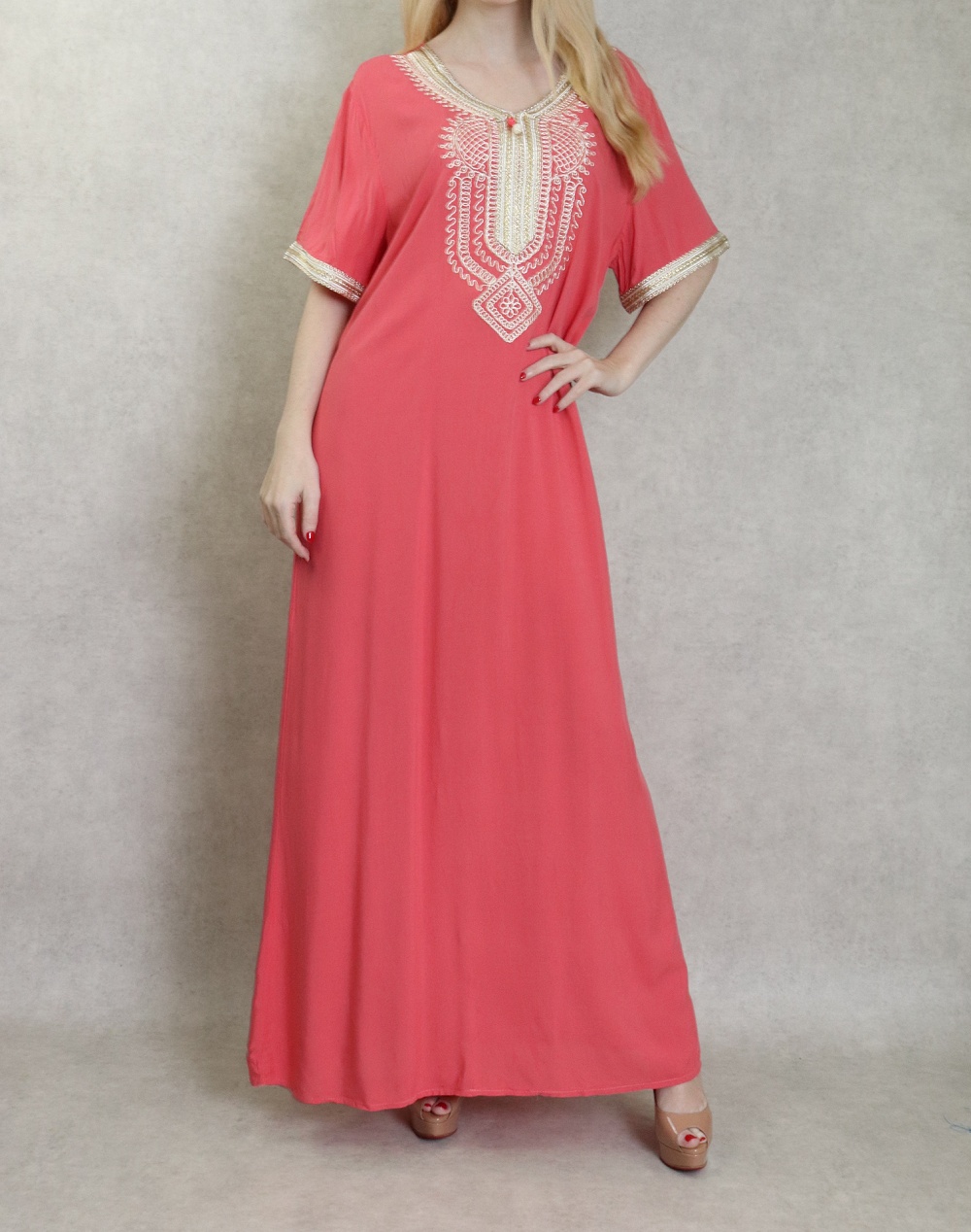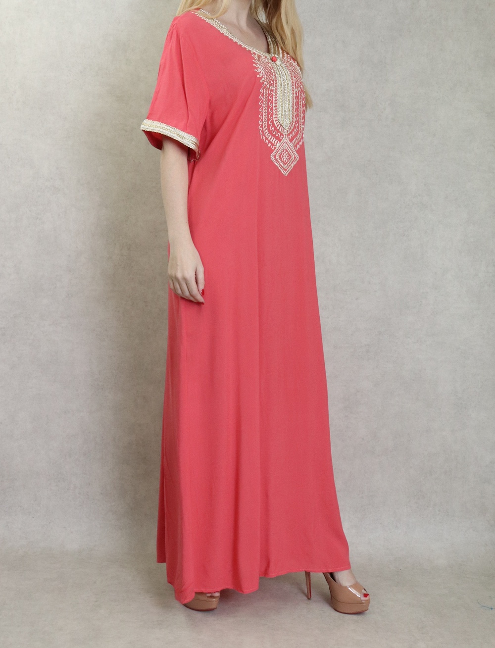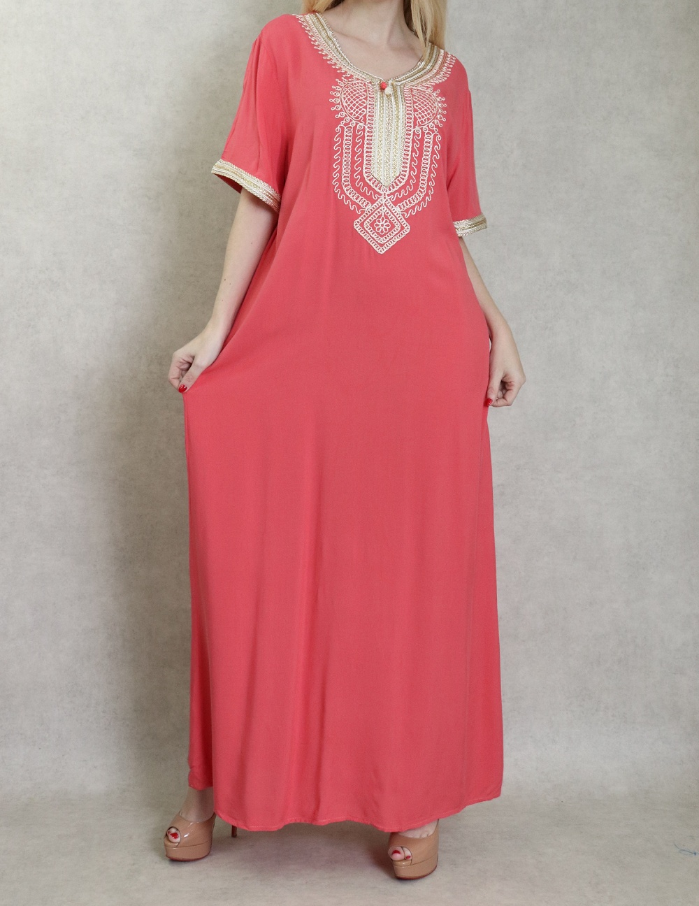 Robe orientale confortable et decontractee avec broderies pour femme - Couleur Corail