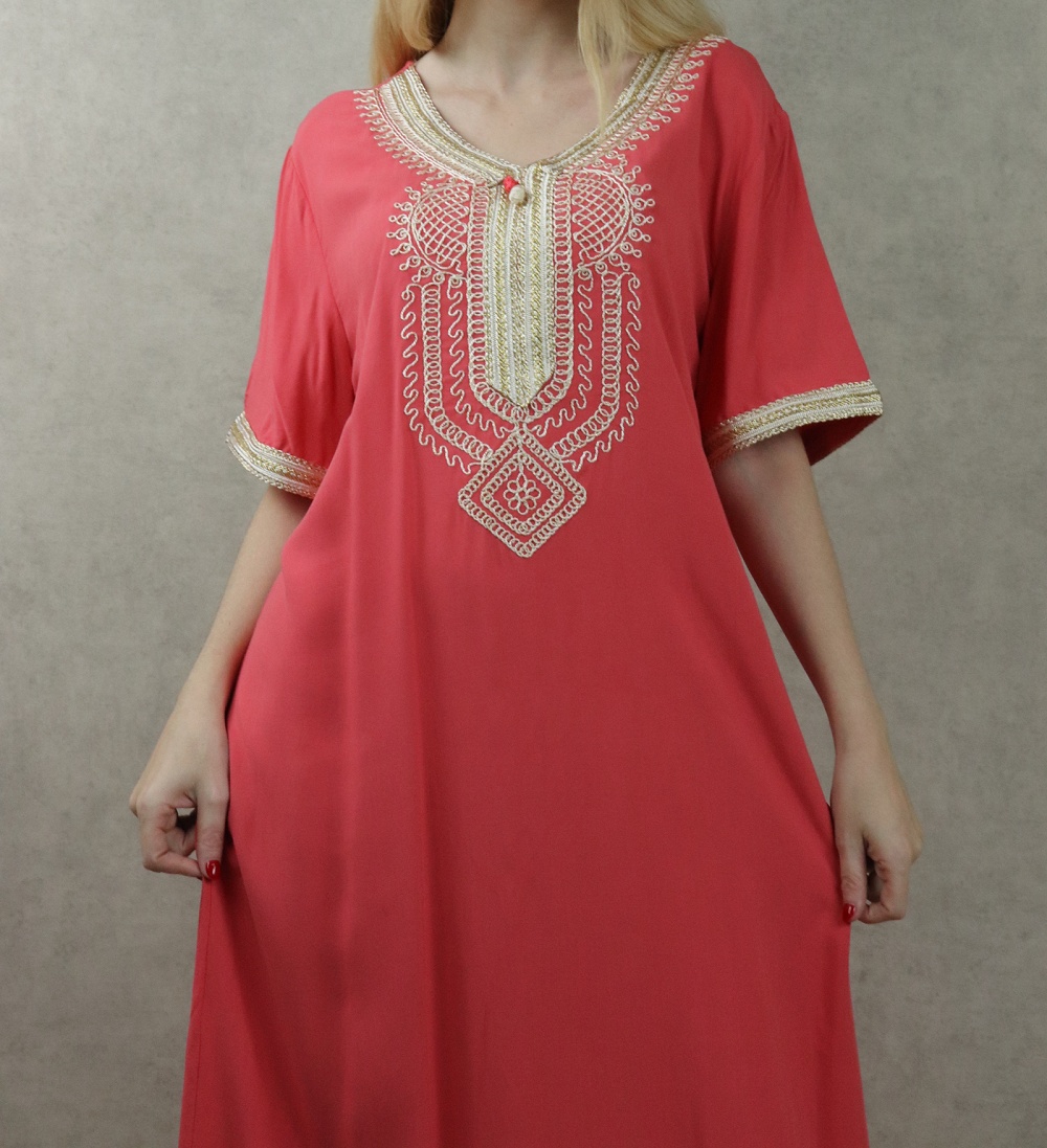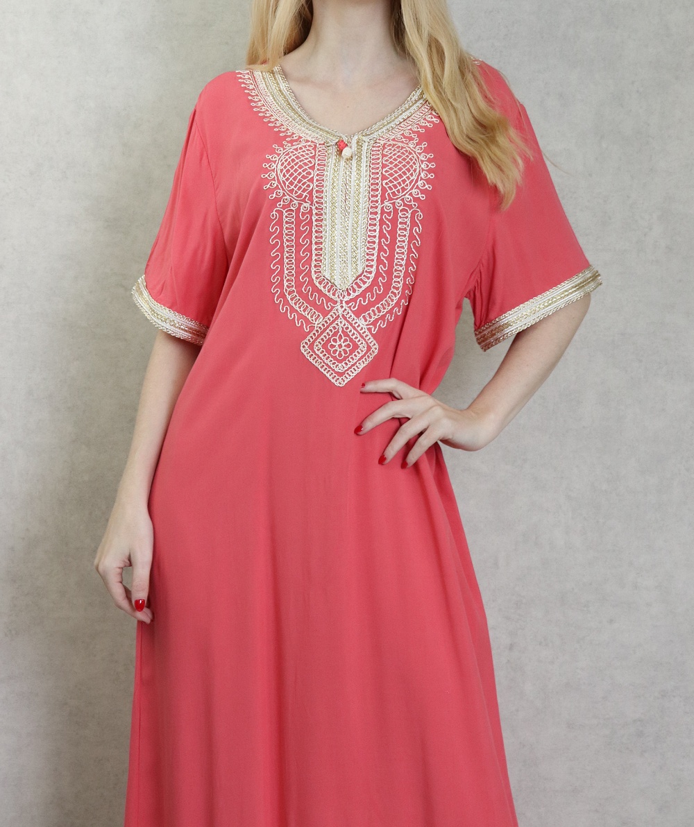 Robe orientale confortable et décontractée avec broderies pour femme - Couleur Corail Vetement & Accessoire