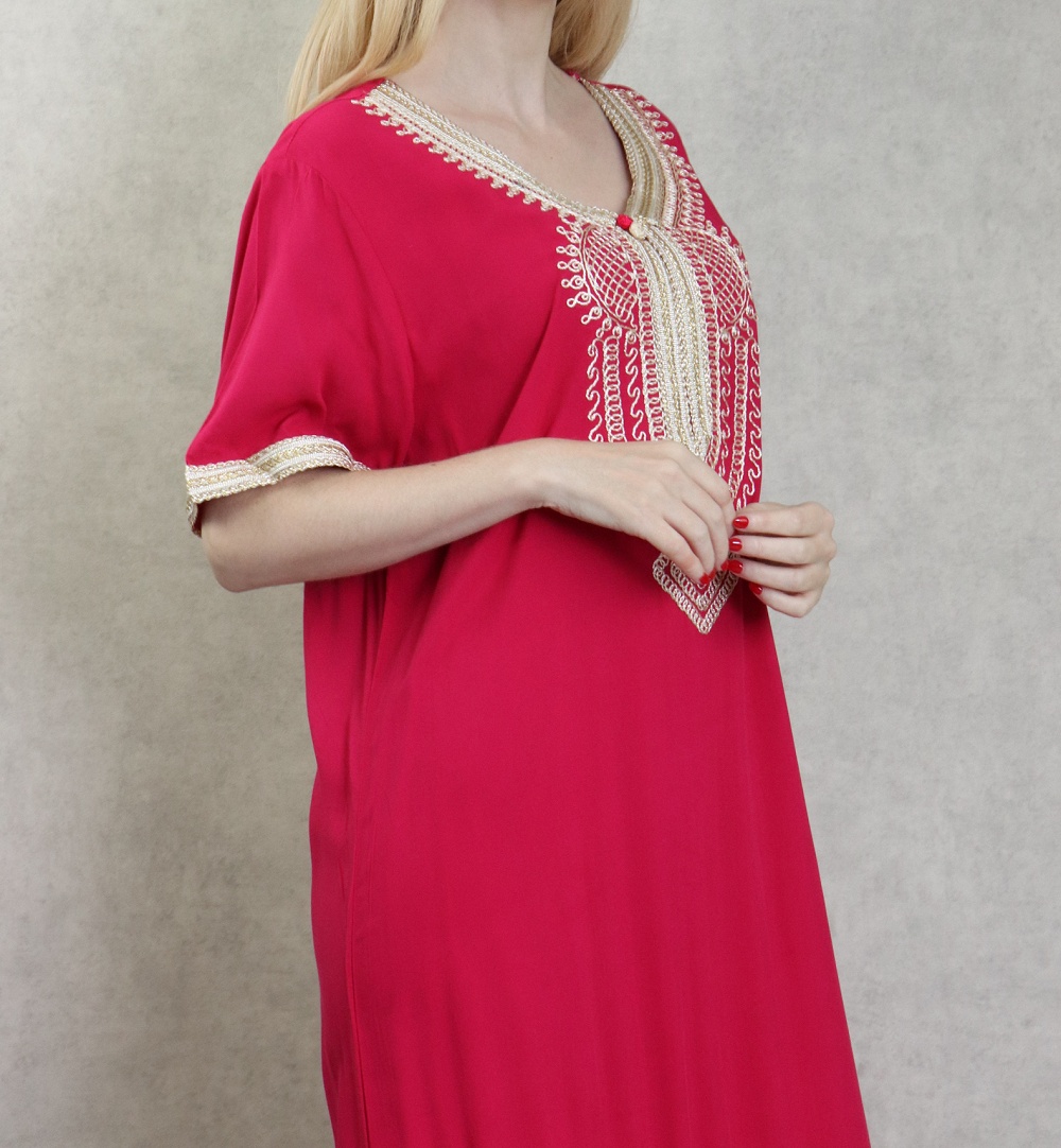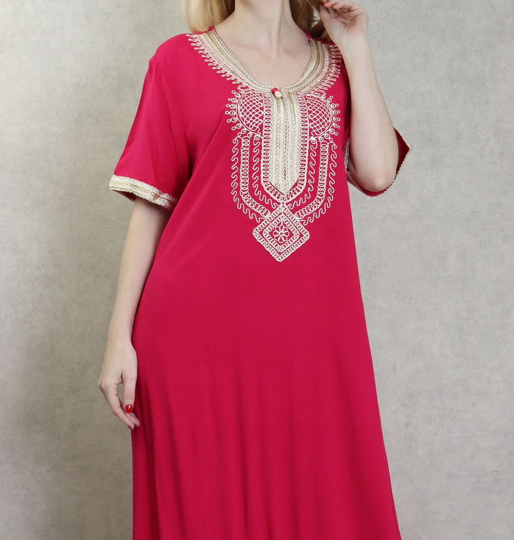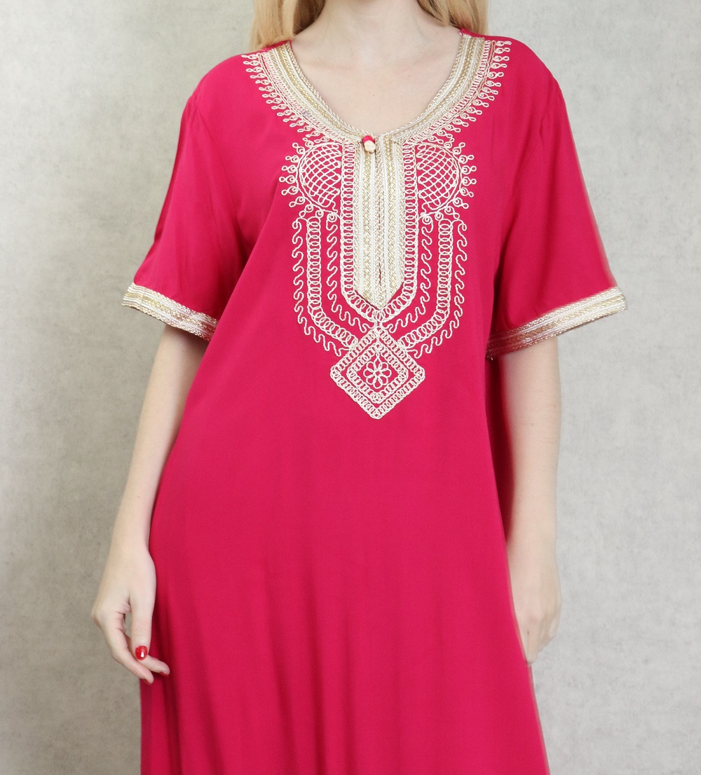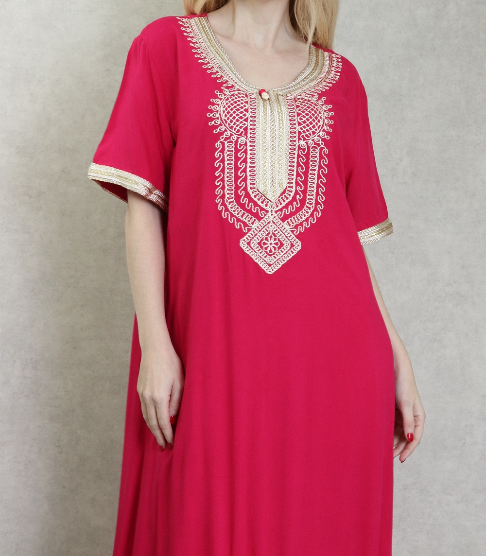 Très belle robe orientale brodée réalisée dans un tissu épais (non transparent), fluide et doux au toucher (coton).