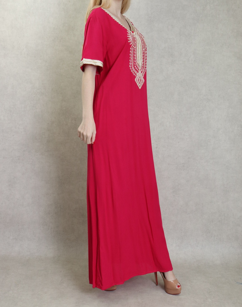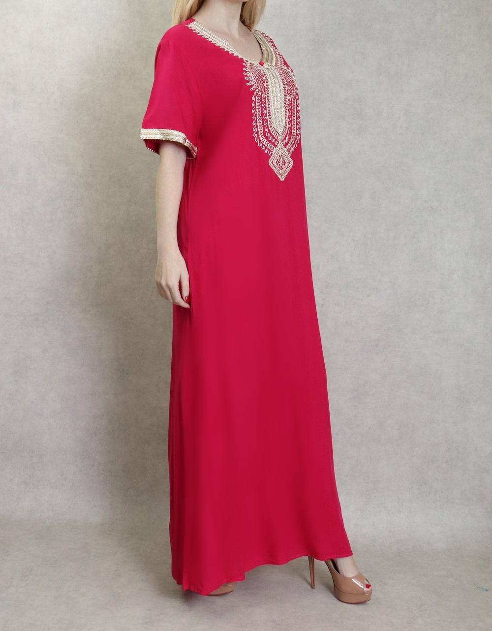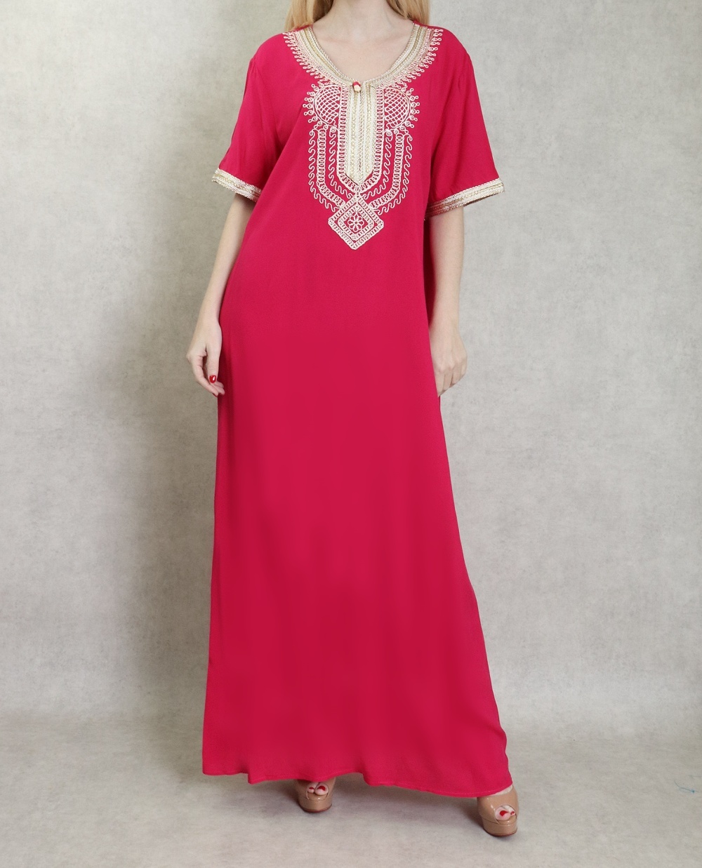 Très belle robe orientale brodée réalisée dans un tissu épais (non transparent), fluide et doux au toucher (coton).