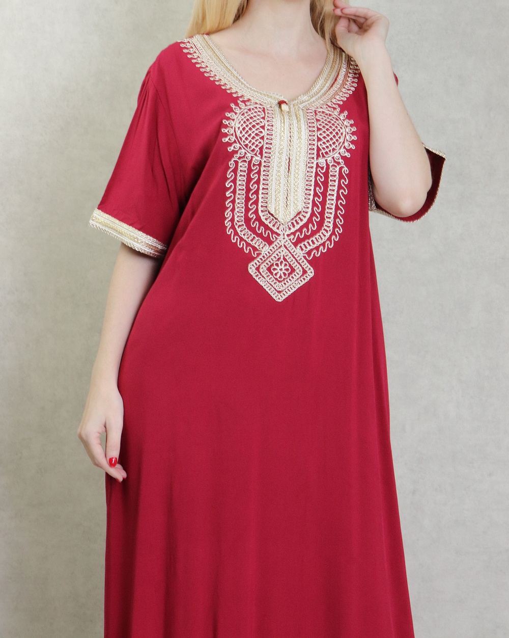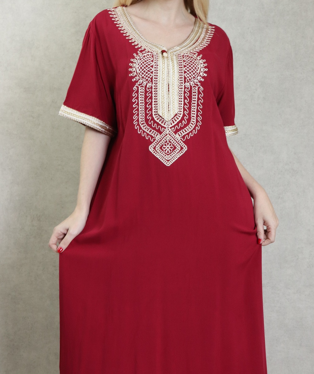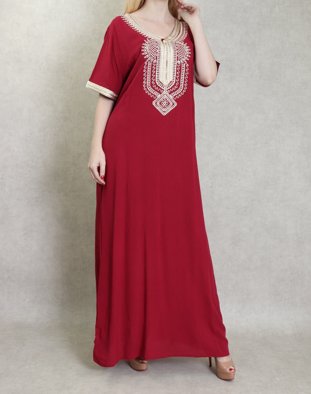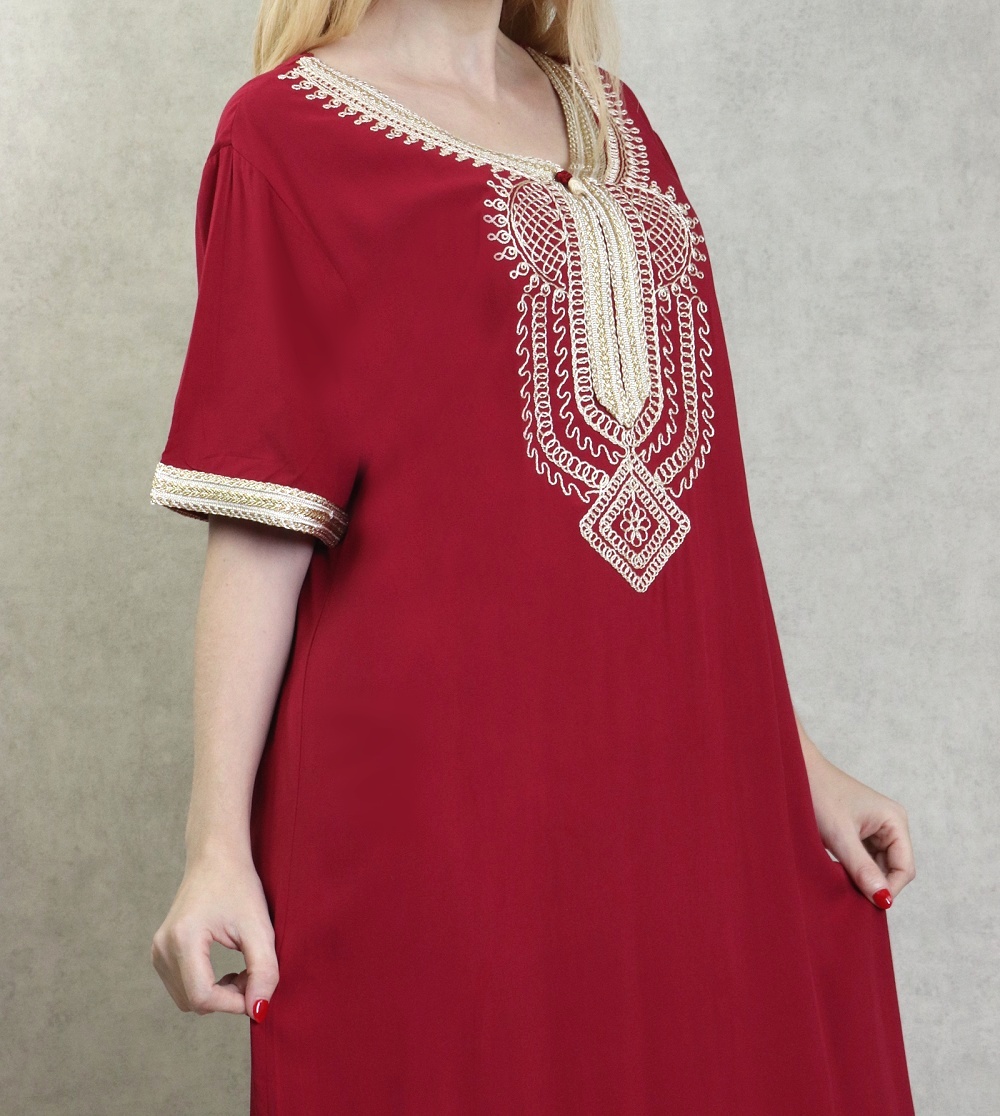 Robe orientale confortable et décontractée avec broderies - Couleur bordeaux Vetement & Accessoire