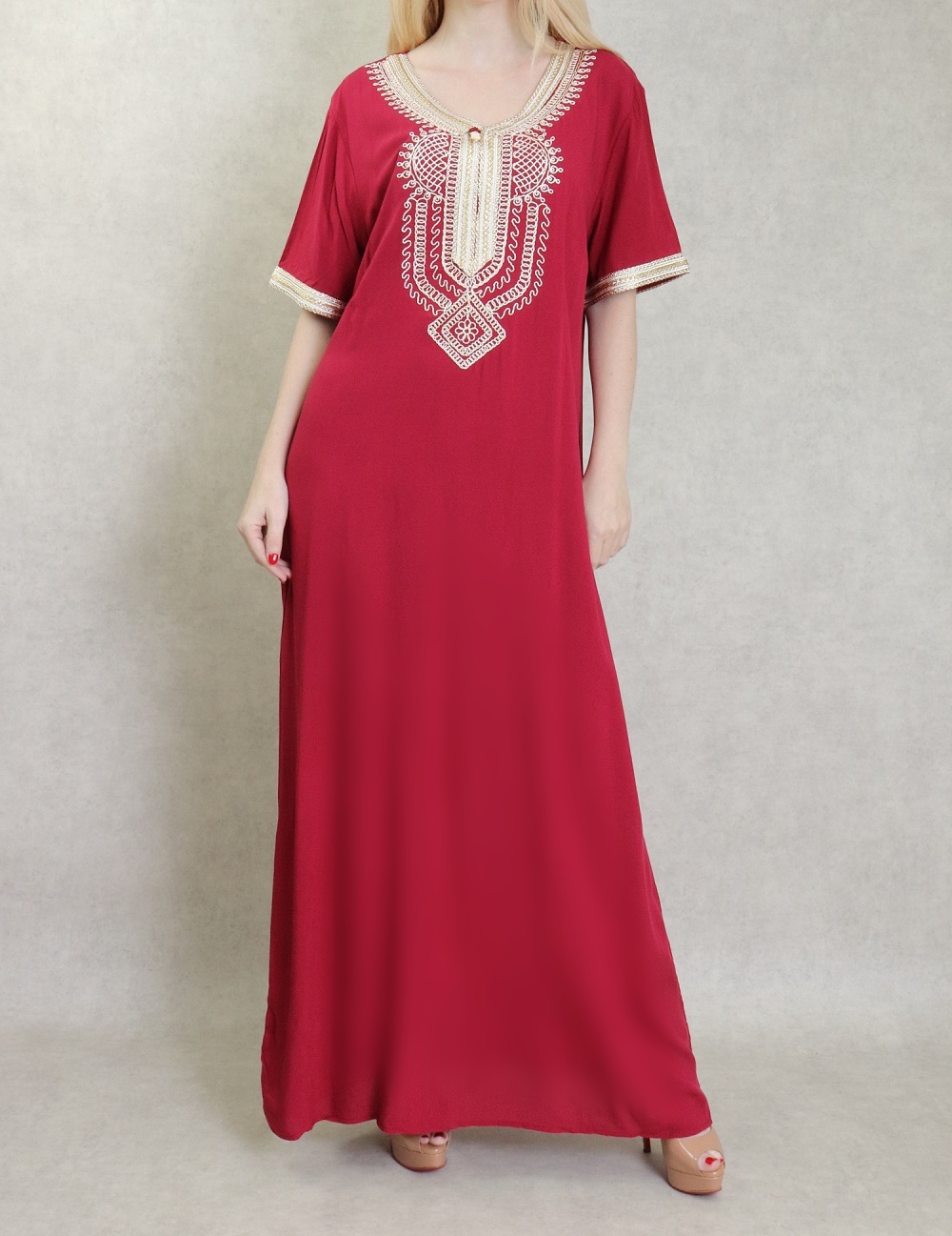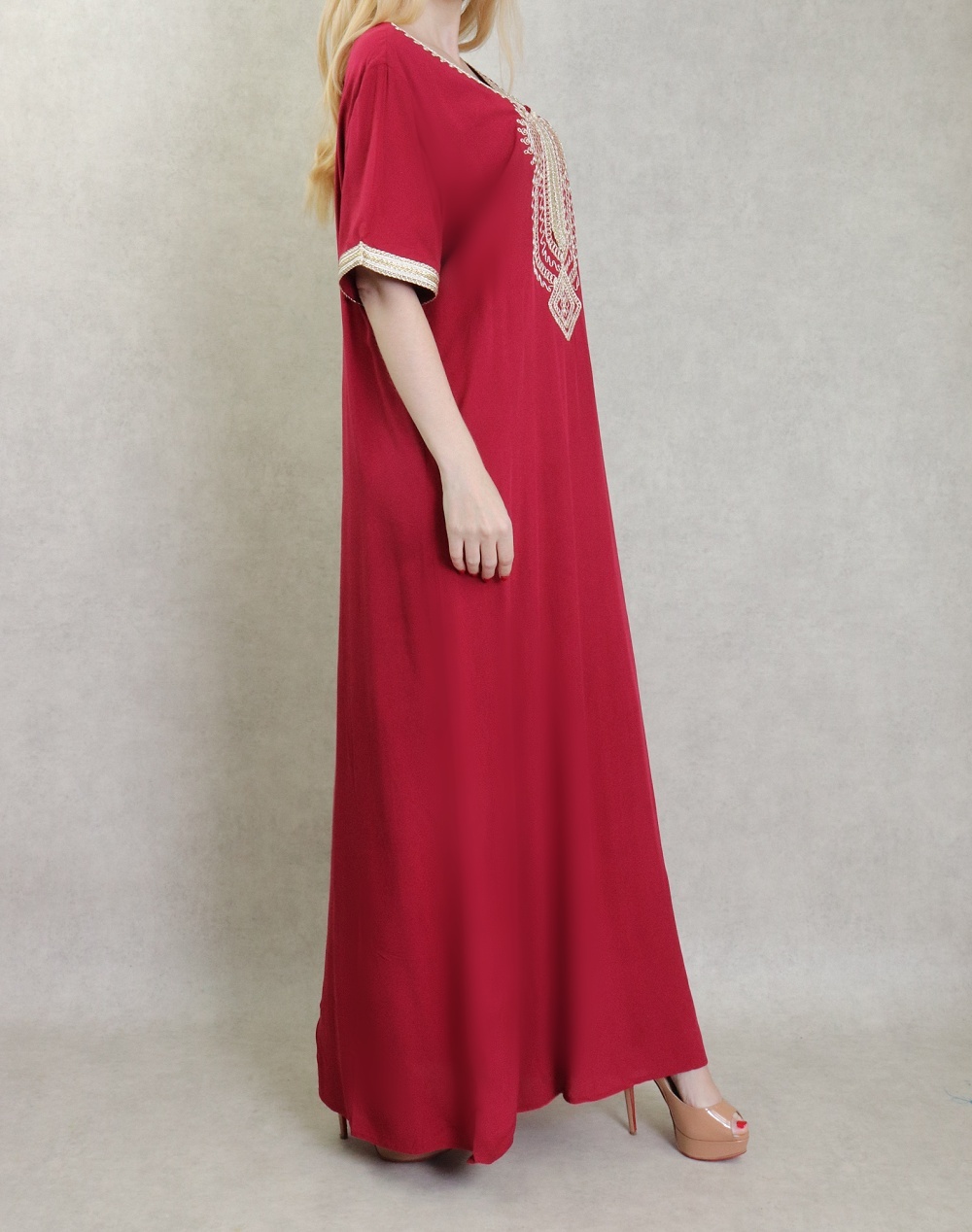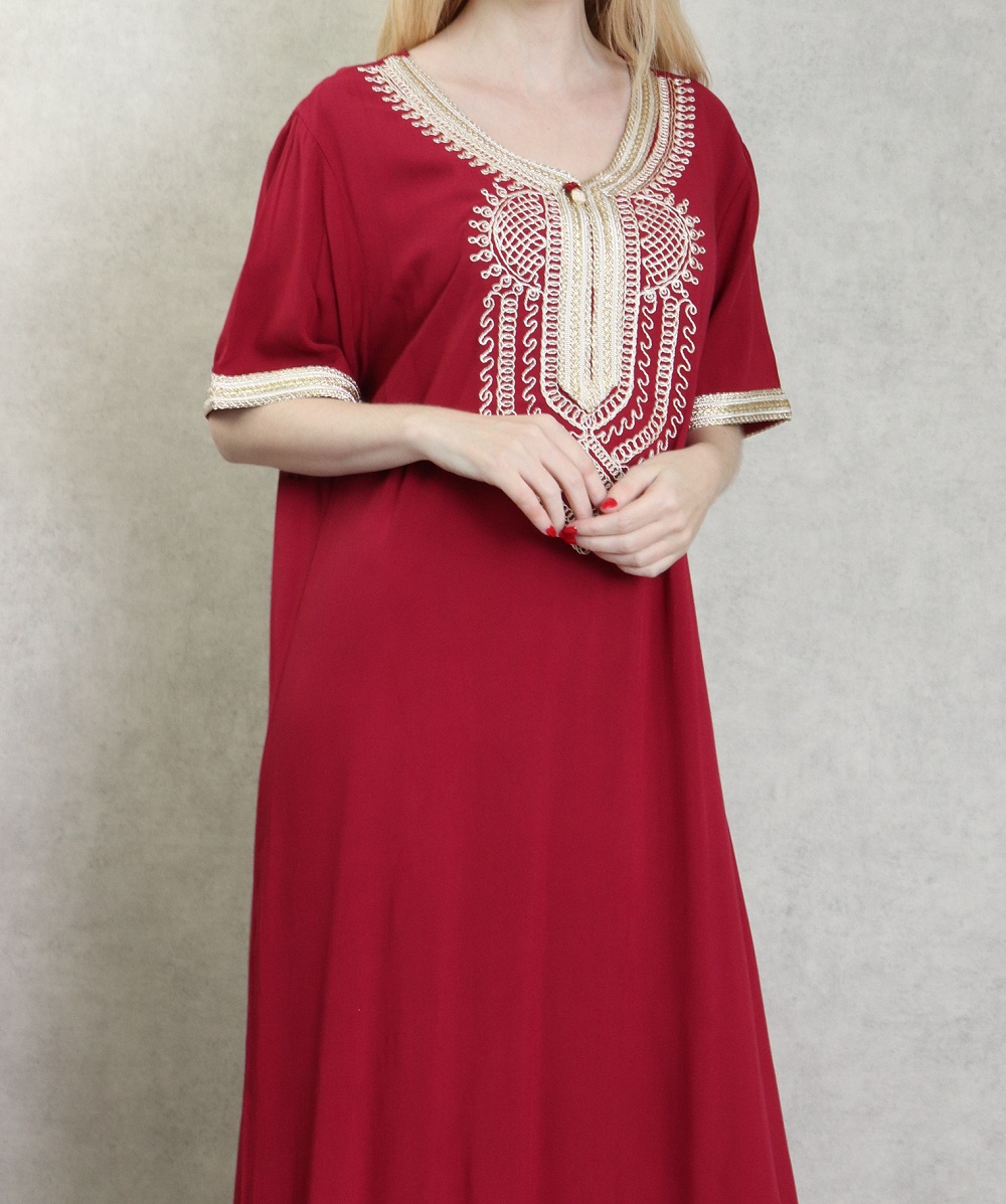 Robe orientale confortable et décontractée avec broderies - Couleur bordeaux Vetement & Accessoire