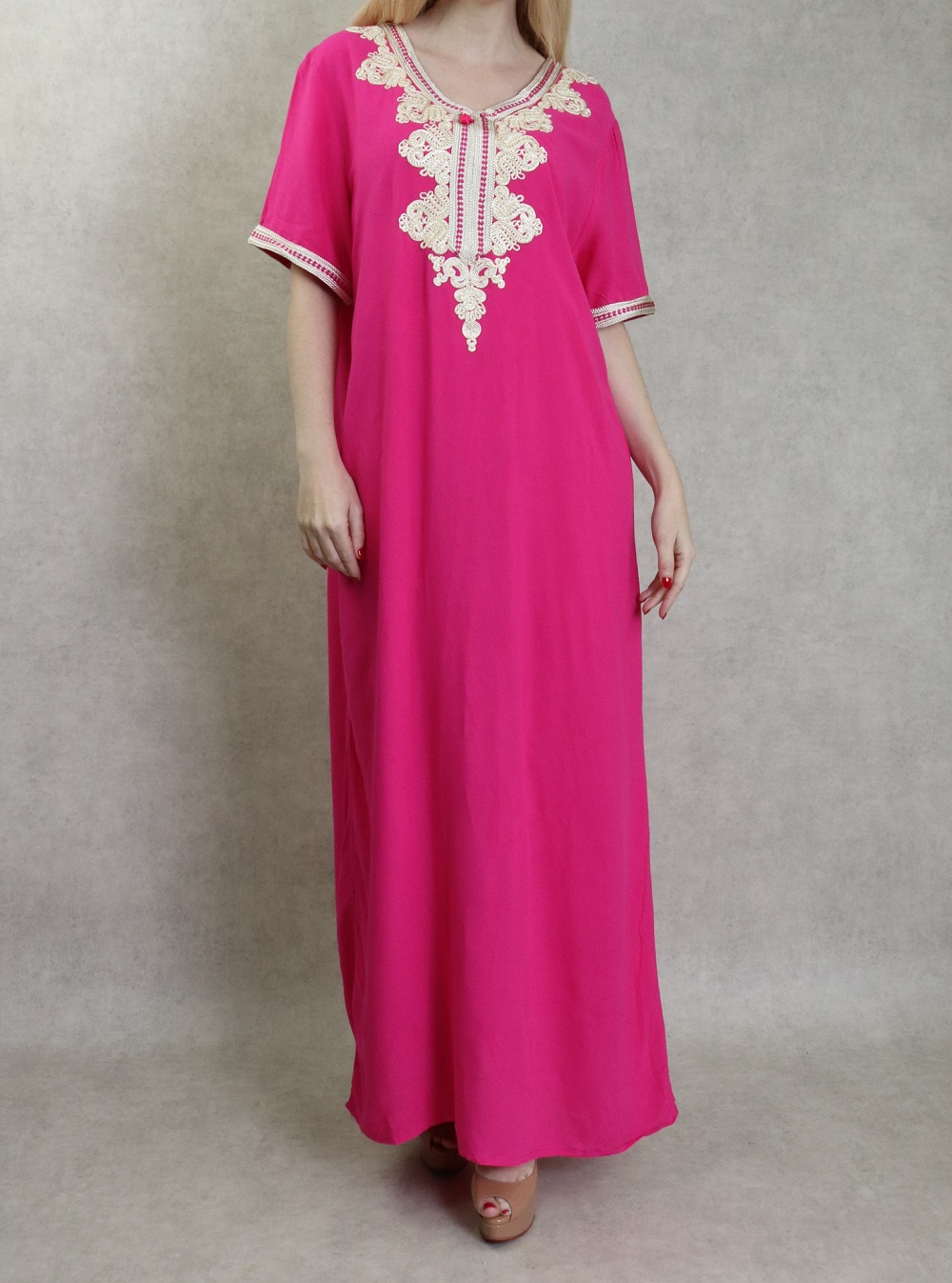 Robe orientale longue brodee manches courtes et decontractee pour femme - Couleur fuchsia