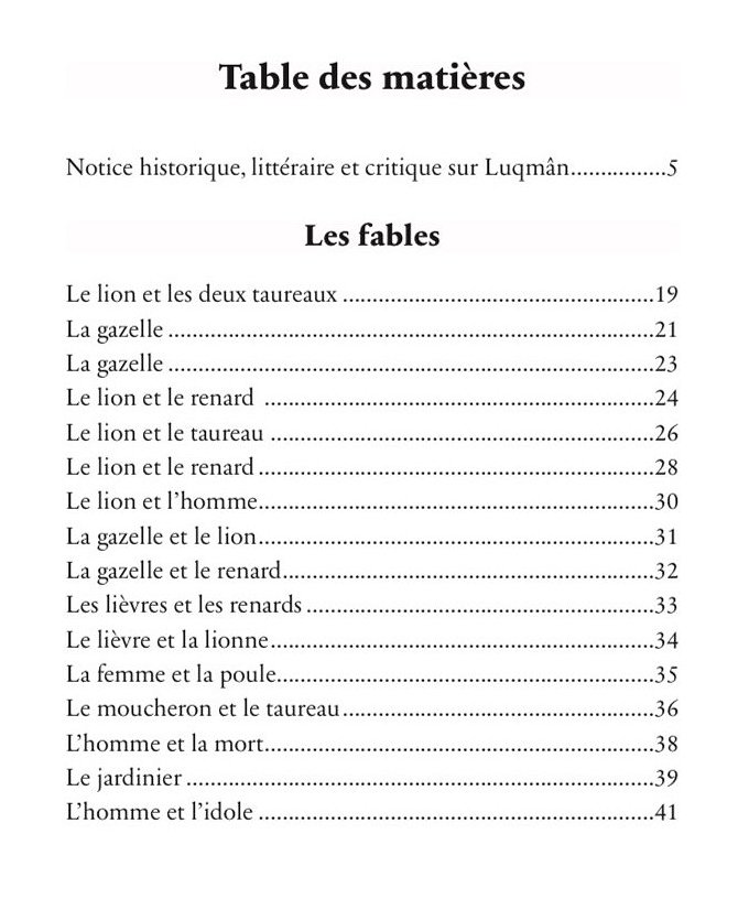 Les fables de Luqman, dont les origines remontent, selon l'opinion la mieux établie, aux temps les plus reculés, jouissent chez tous les peuples de l'Orient, d'une célébrité extraordinaires. Elles ont servi de modèle à à certaines histoires postérieures.